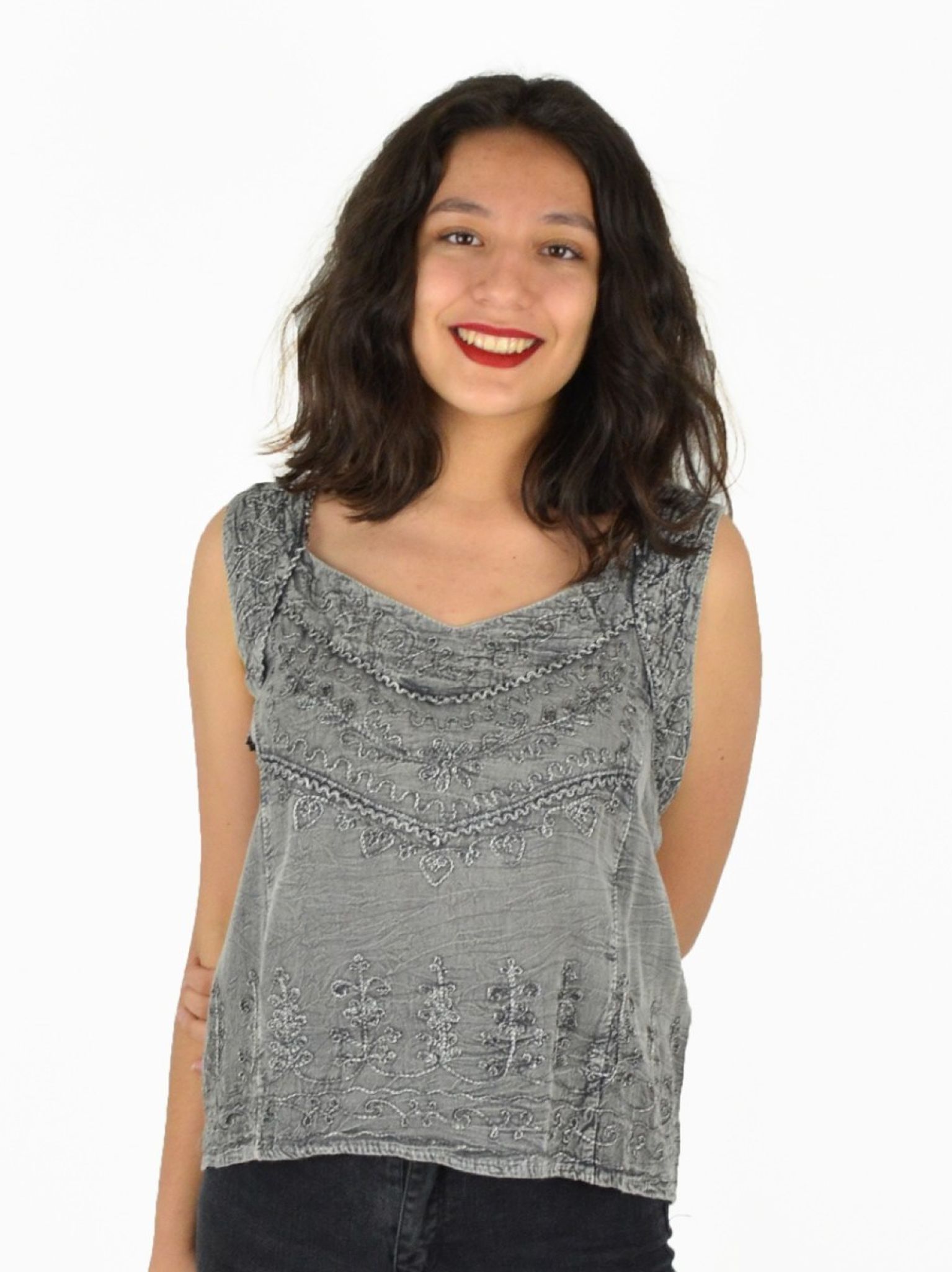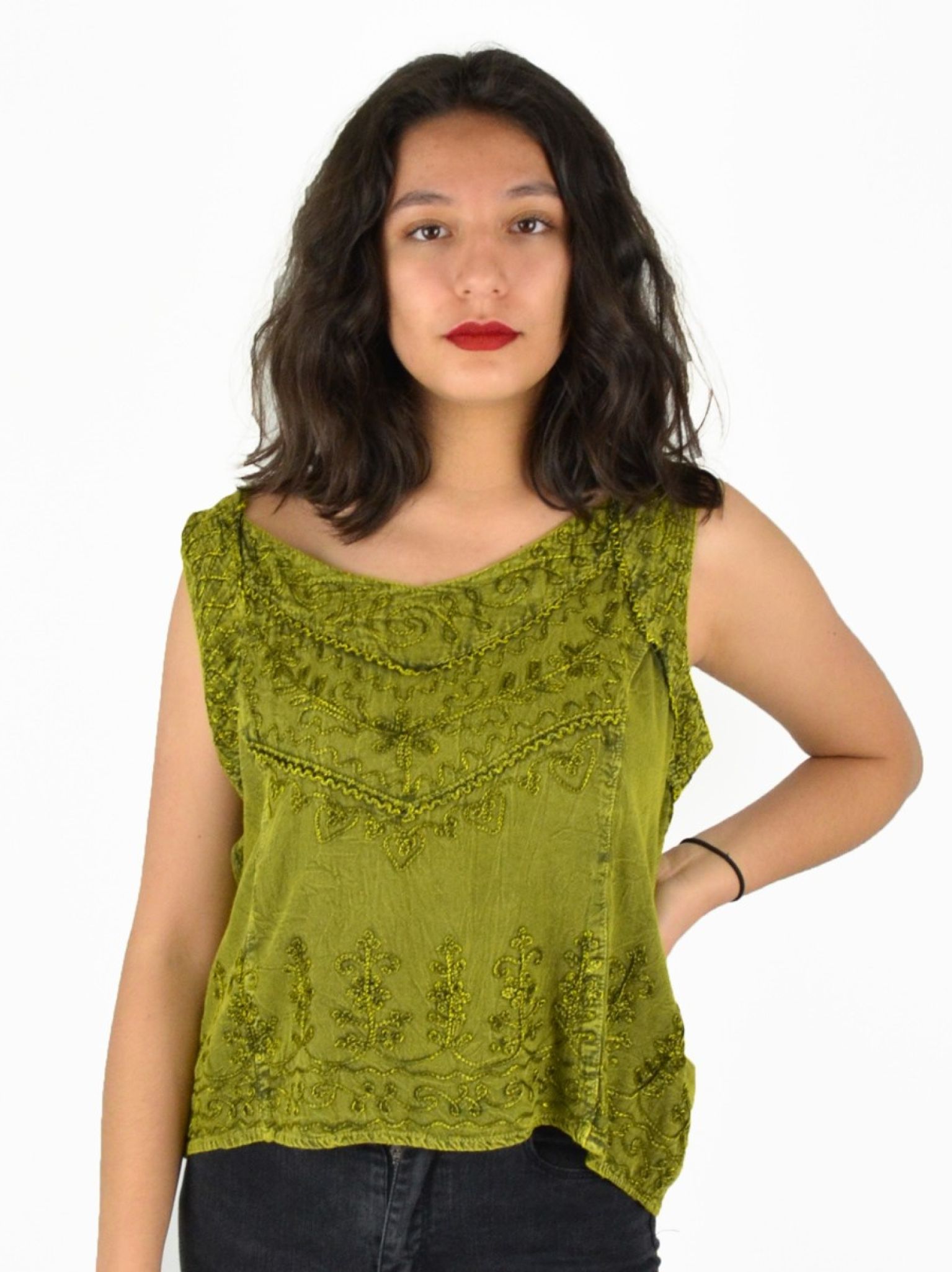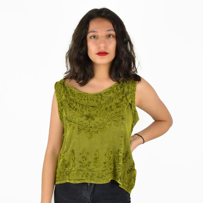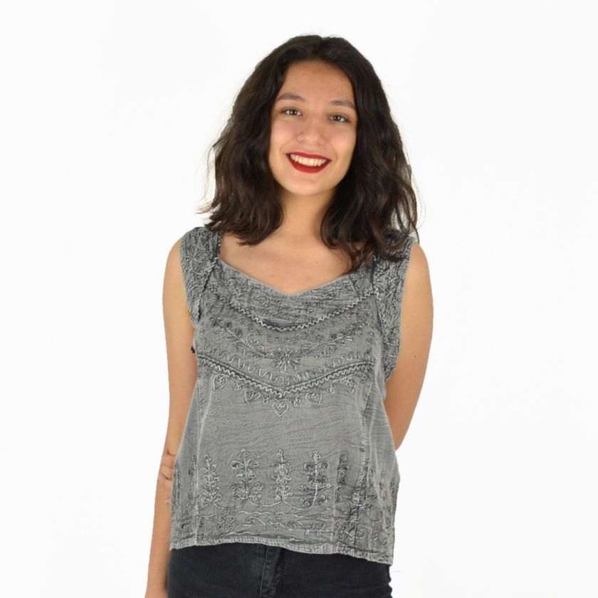 Haut brodé 100% viscose.