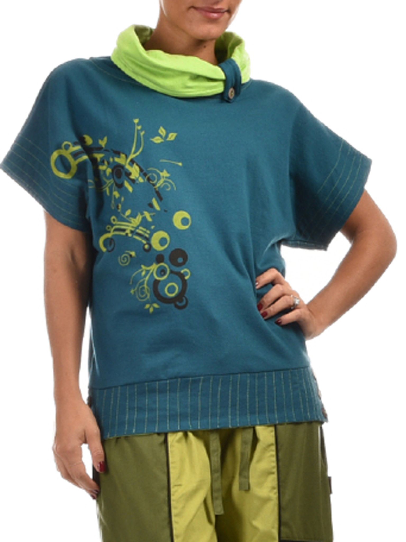 Haut col large 100% Coton flanelle.