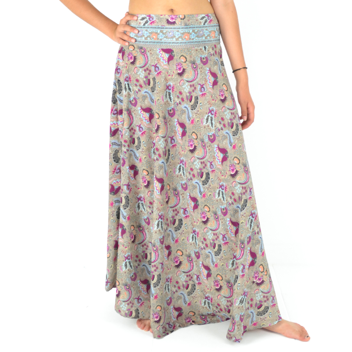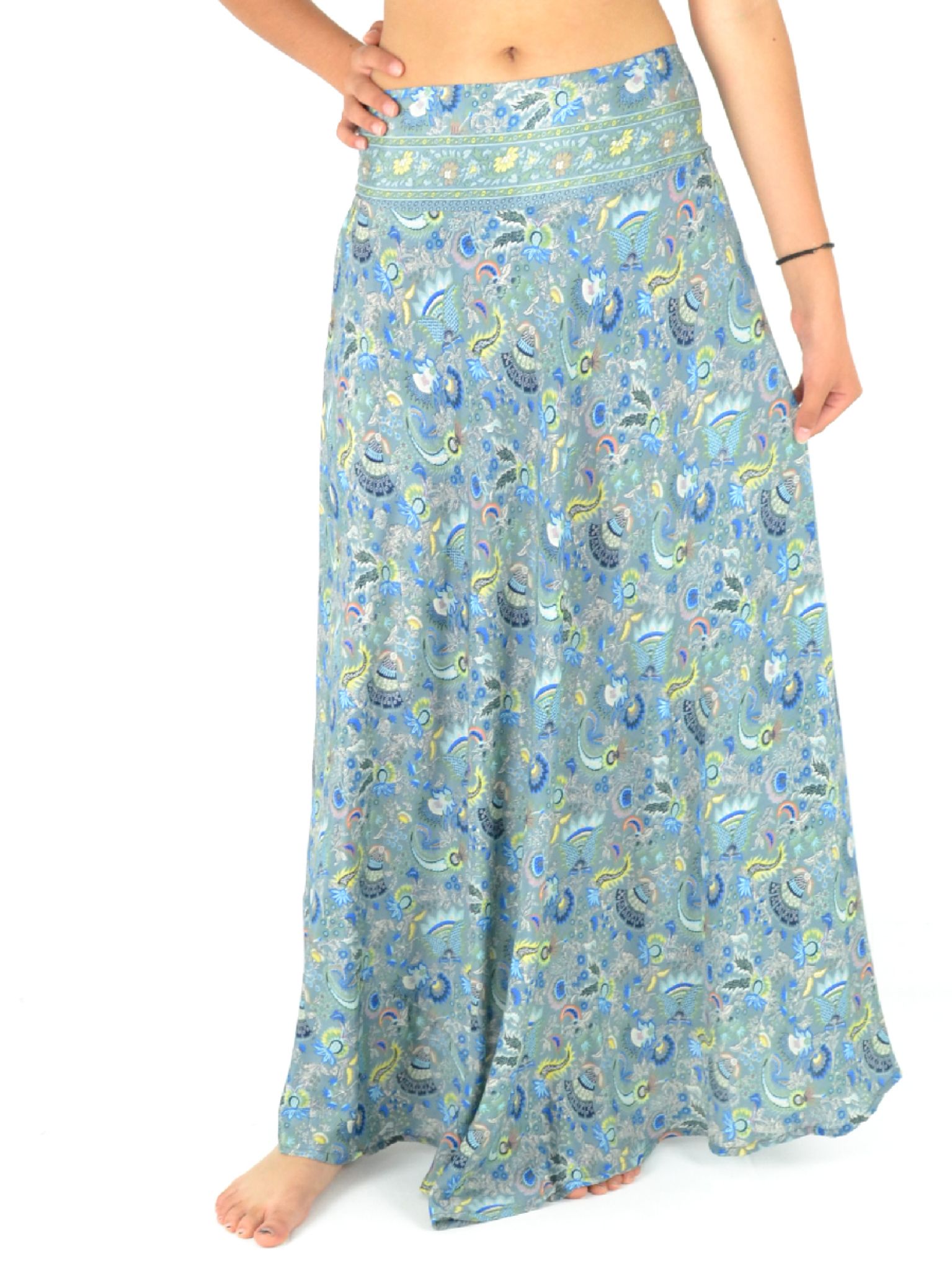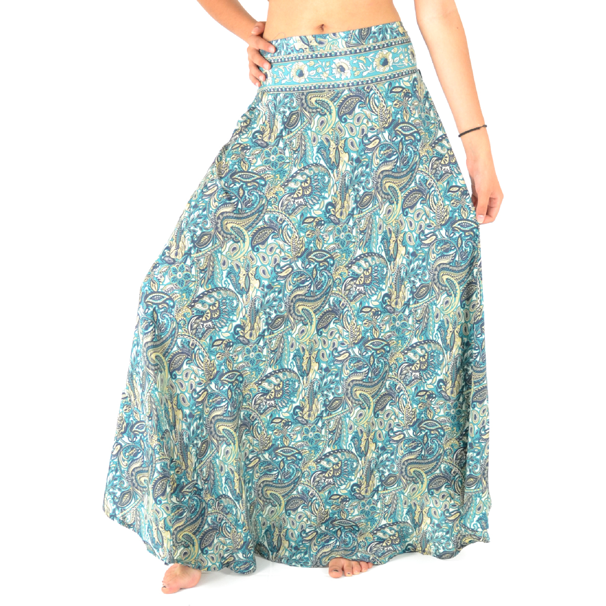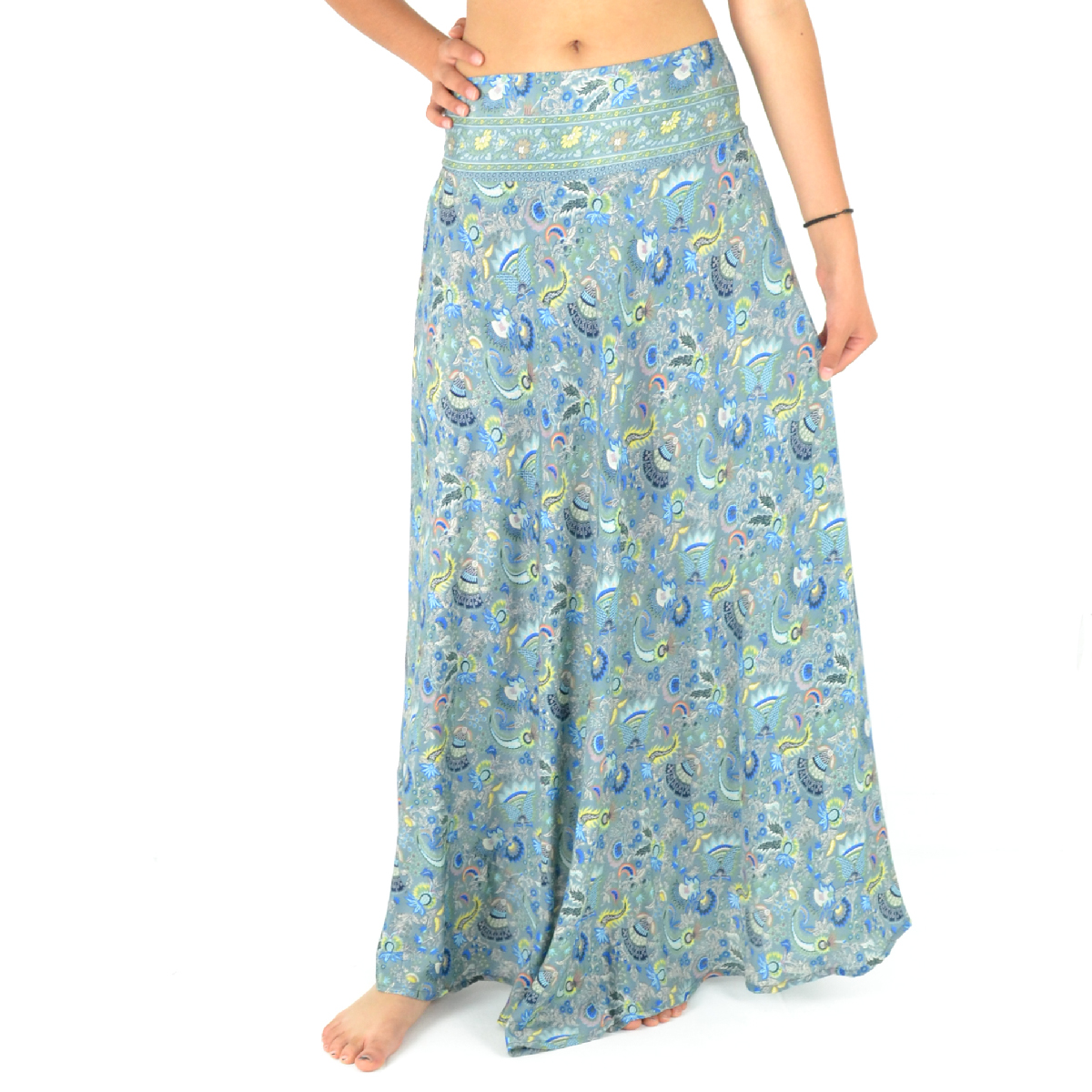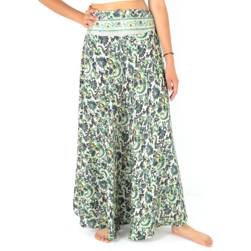 Découvrez notre jupe longue fluide en 100% polyester, ultra-confortable grâce à sa taille élastiquée et son style évasé !