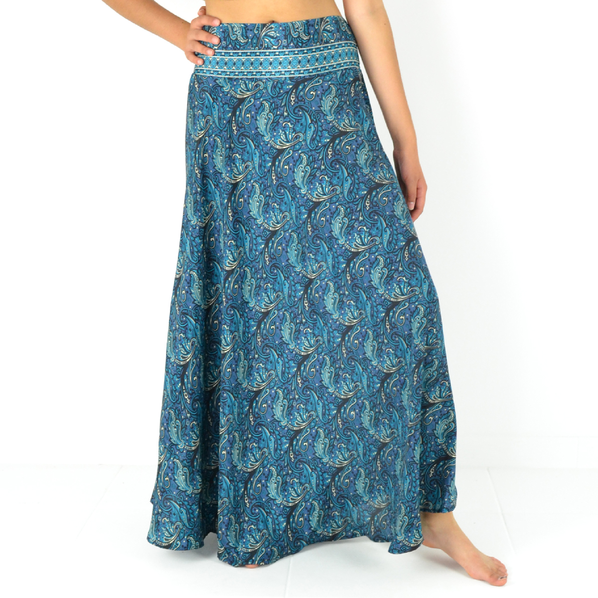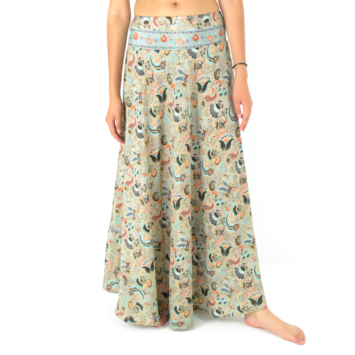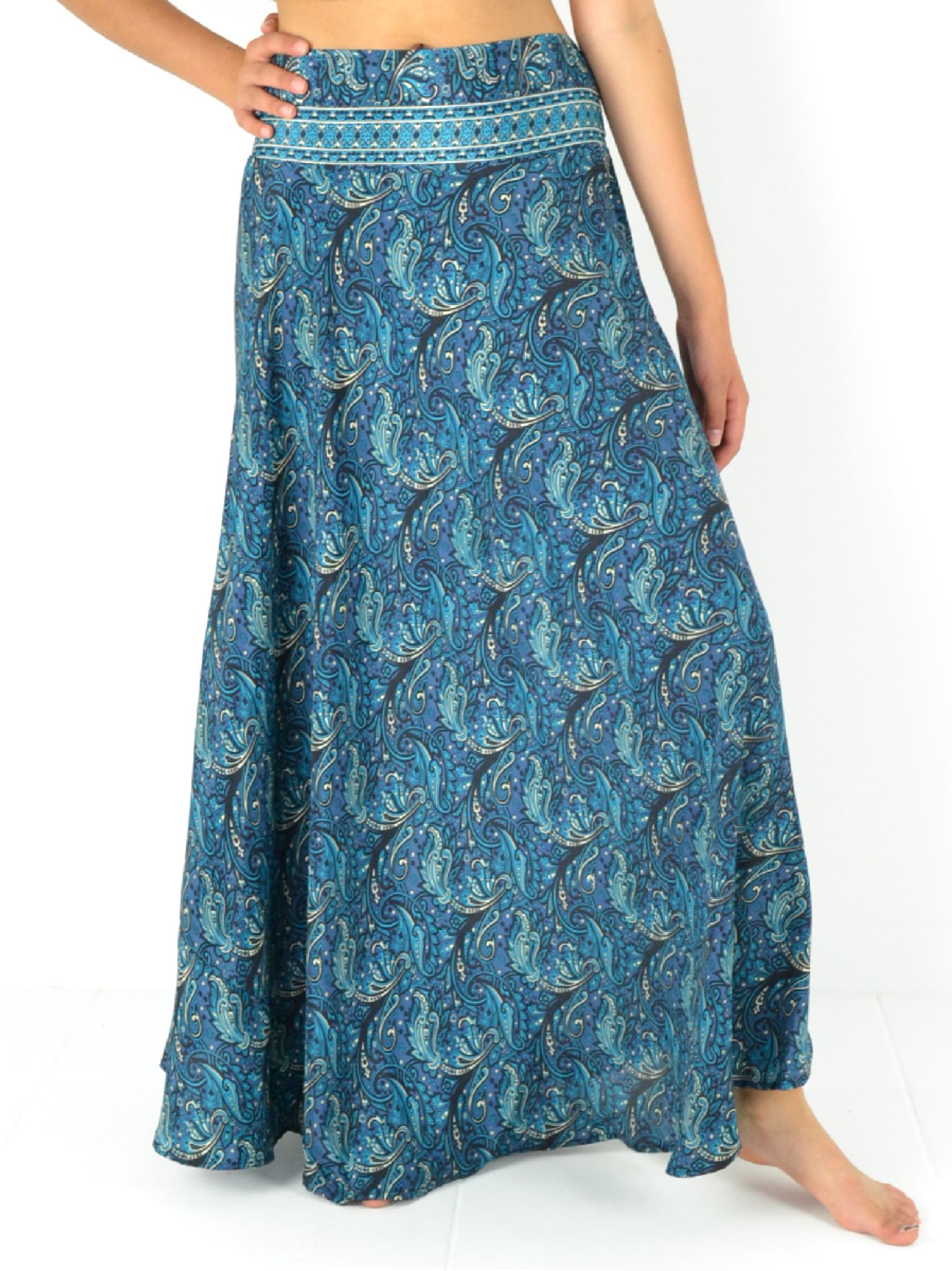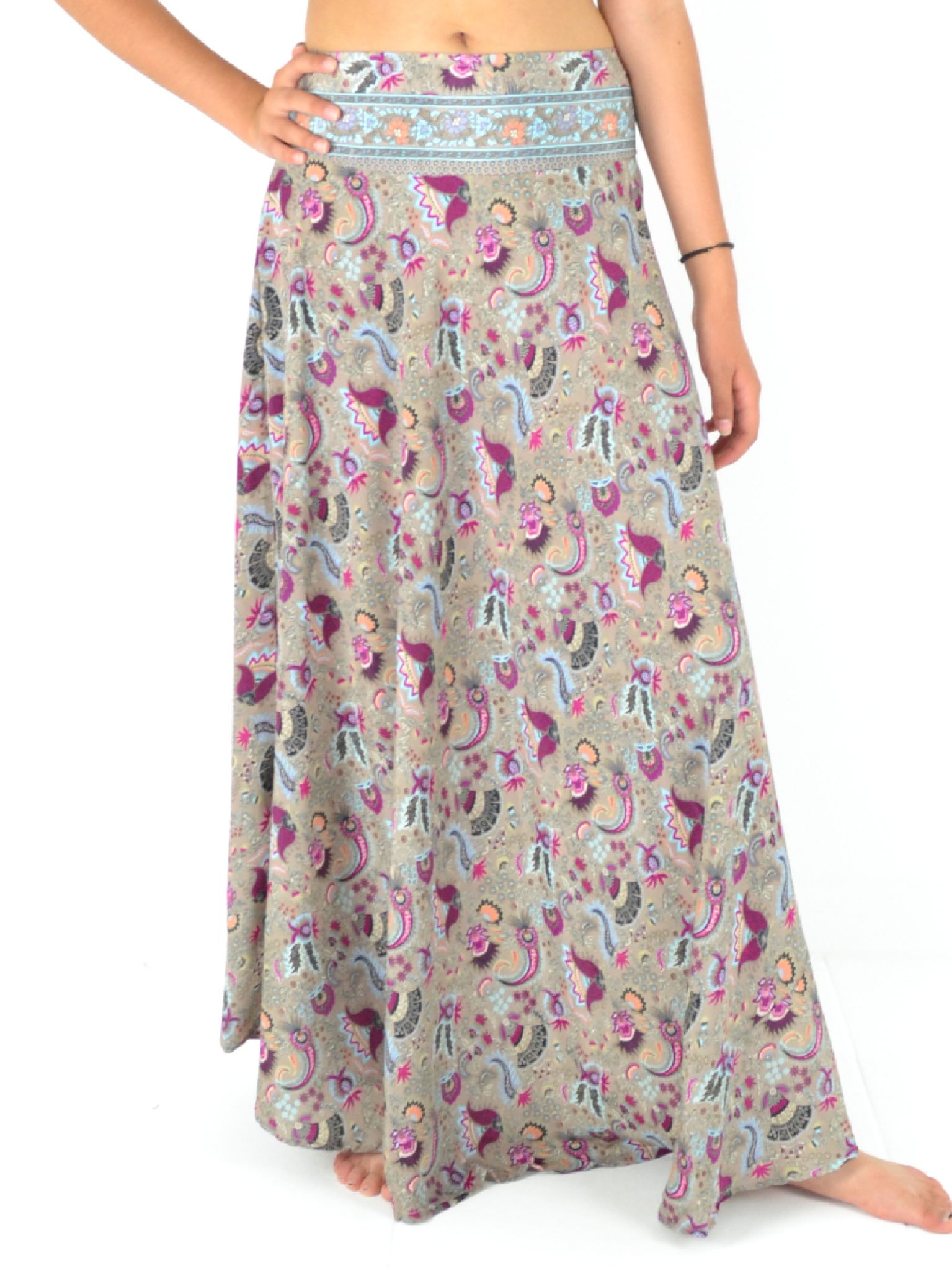 Découvrez notre jupe longue fluide en 100% polyester, ultra-confortable grâce à sa taille élastiquée et son style évasé !