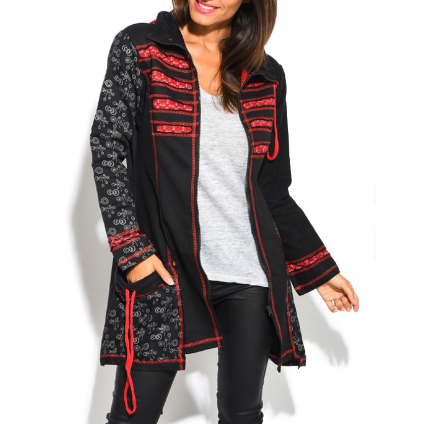 Manteau Noir bandes rouges