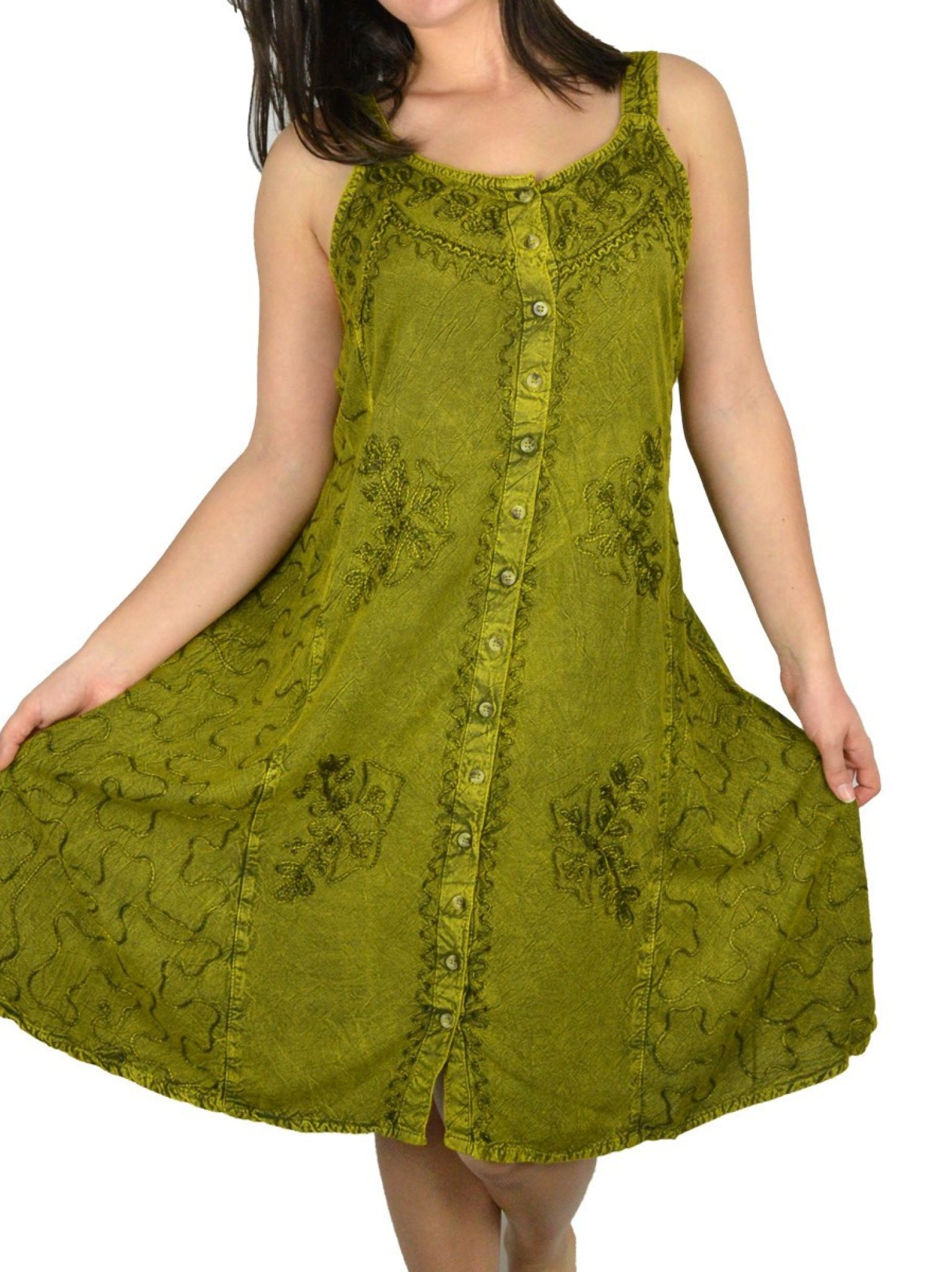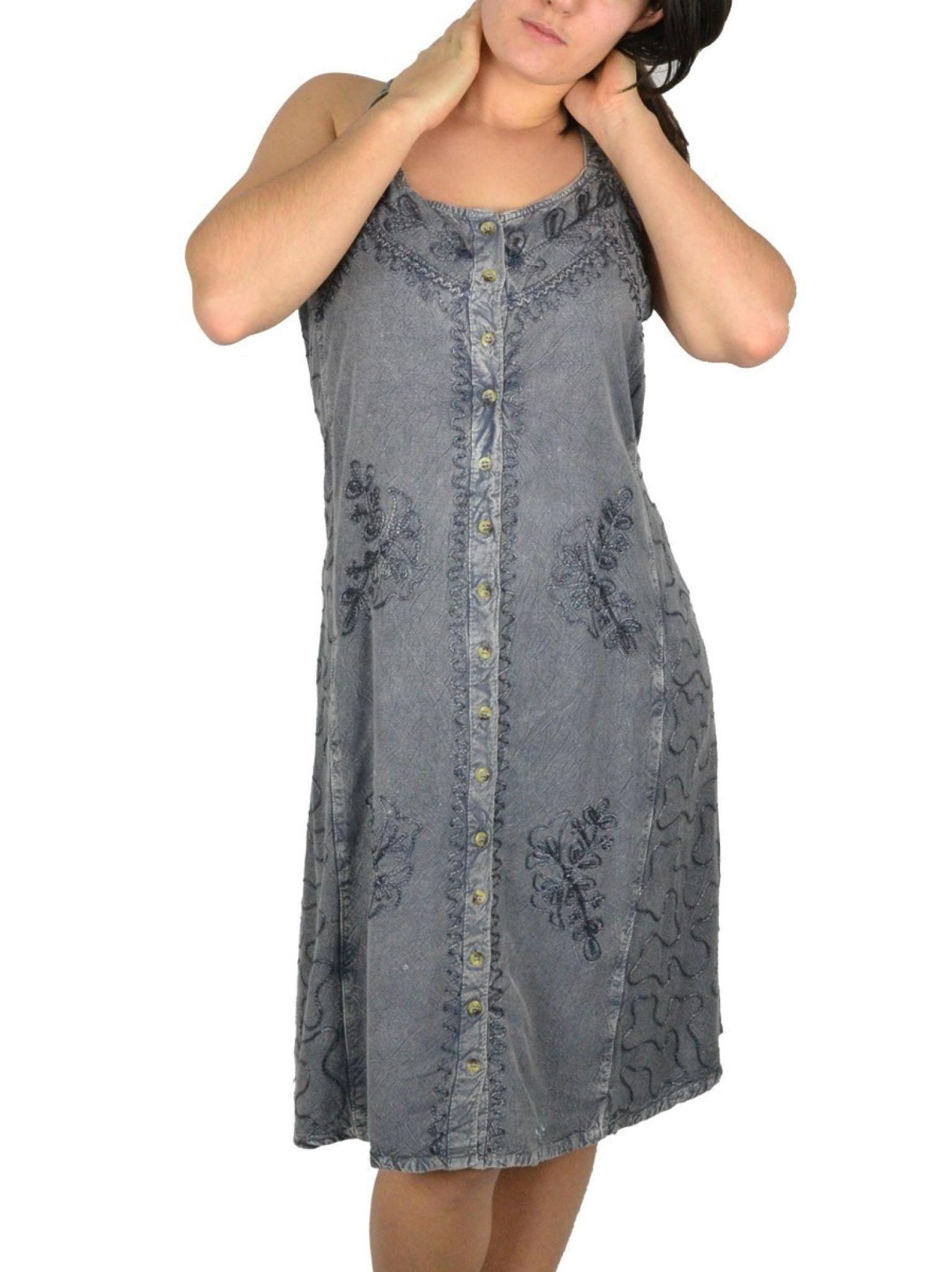 Robe boutons et broderie 100% Viscose.