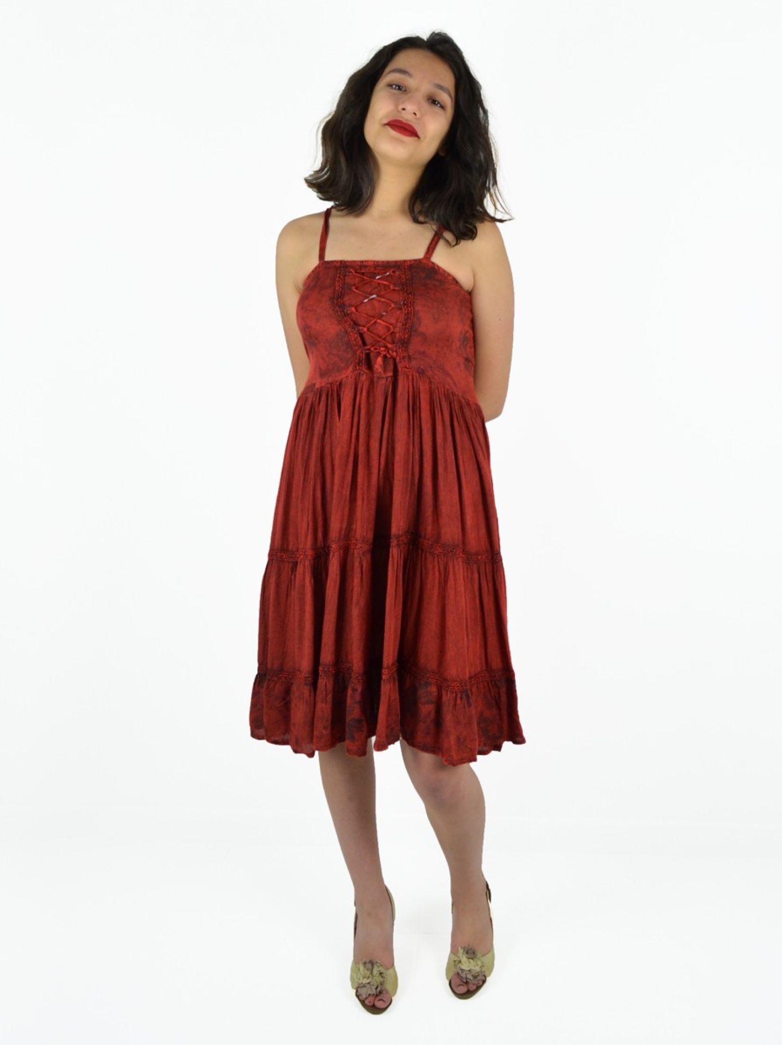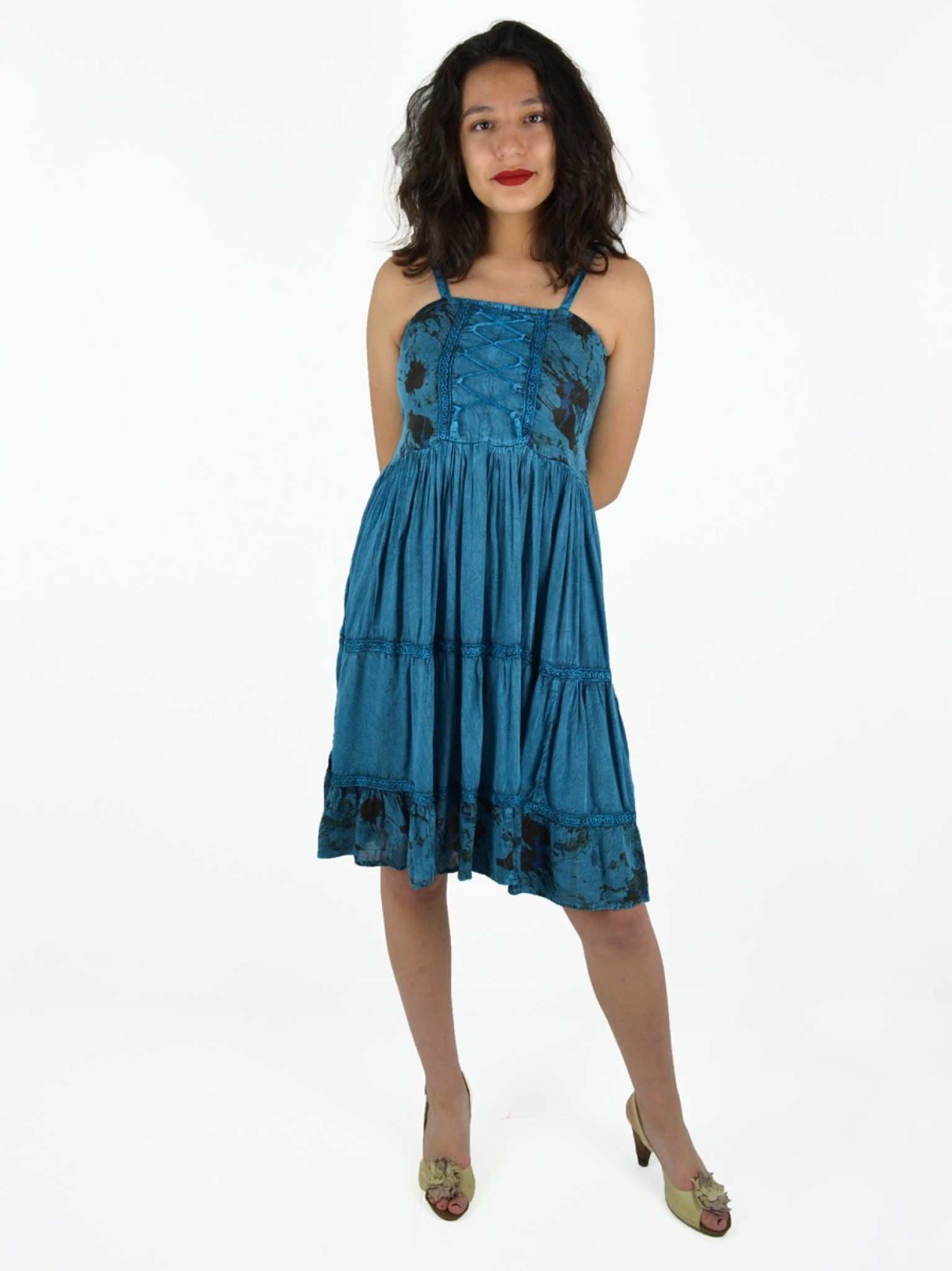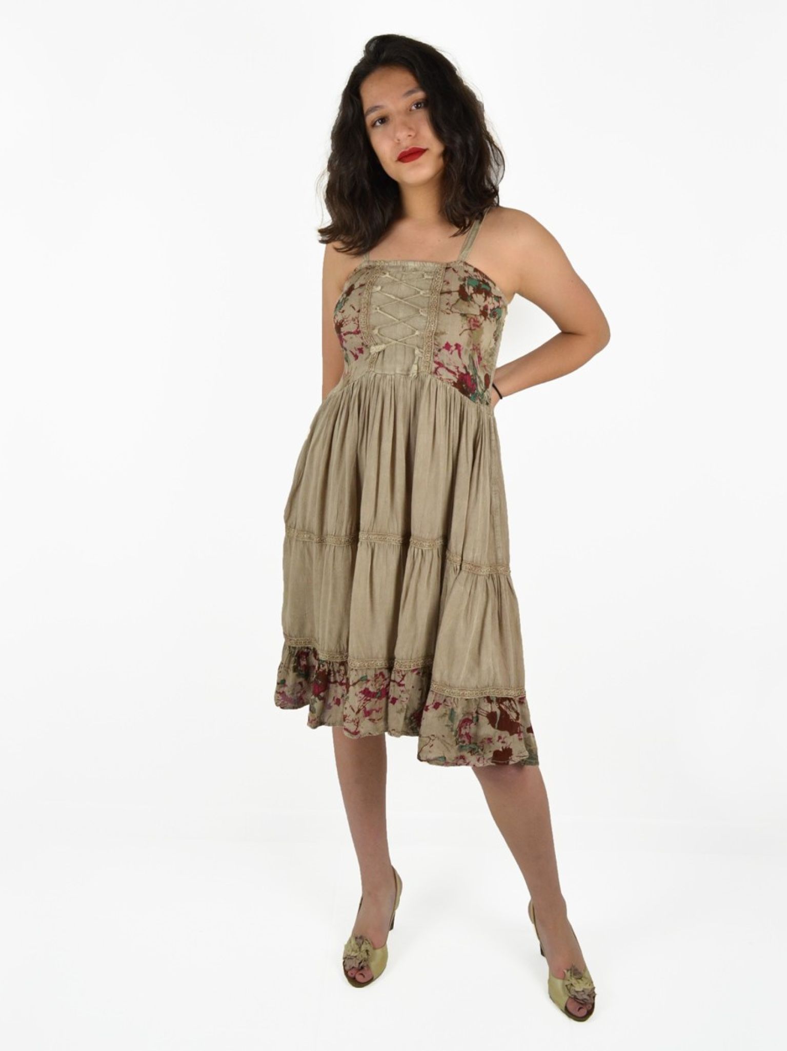 Robe à bretelles et broderie. 100% viscose.