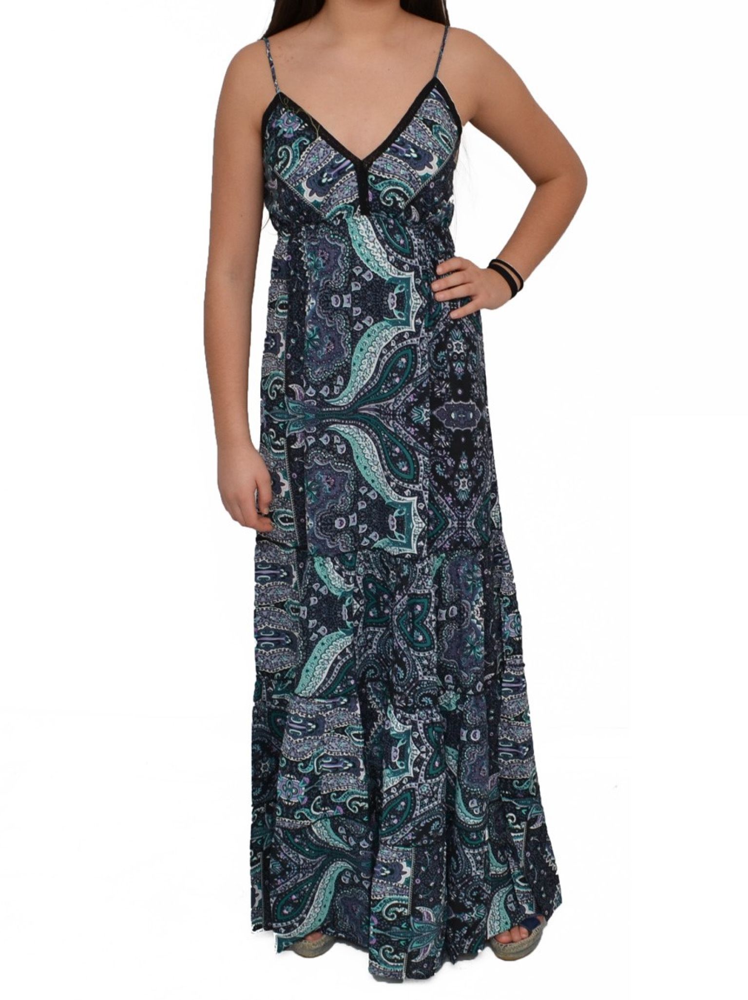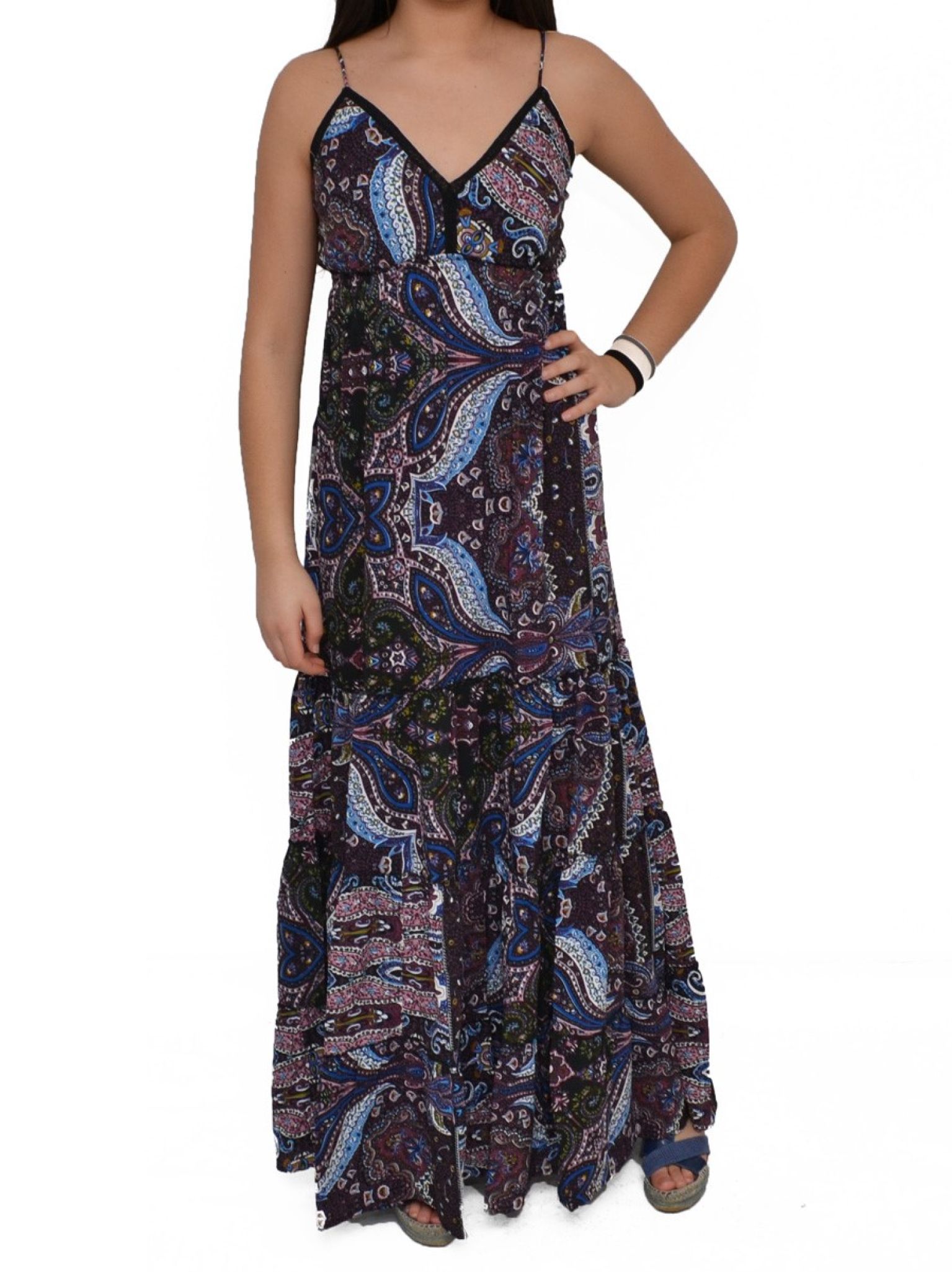 Robe longue bretelles fines 100% Polyester.