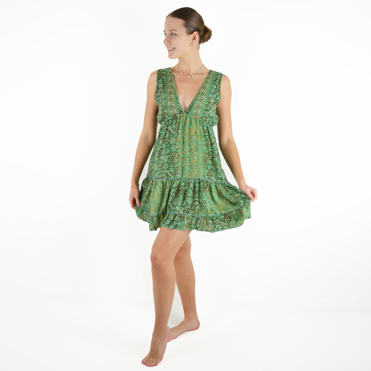 🌷 Col en V : une découpe élégante qui affine le cou.