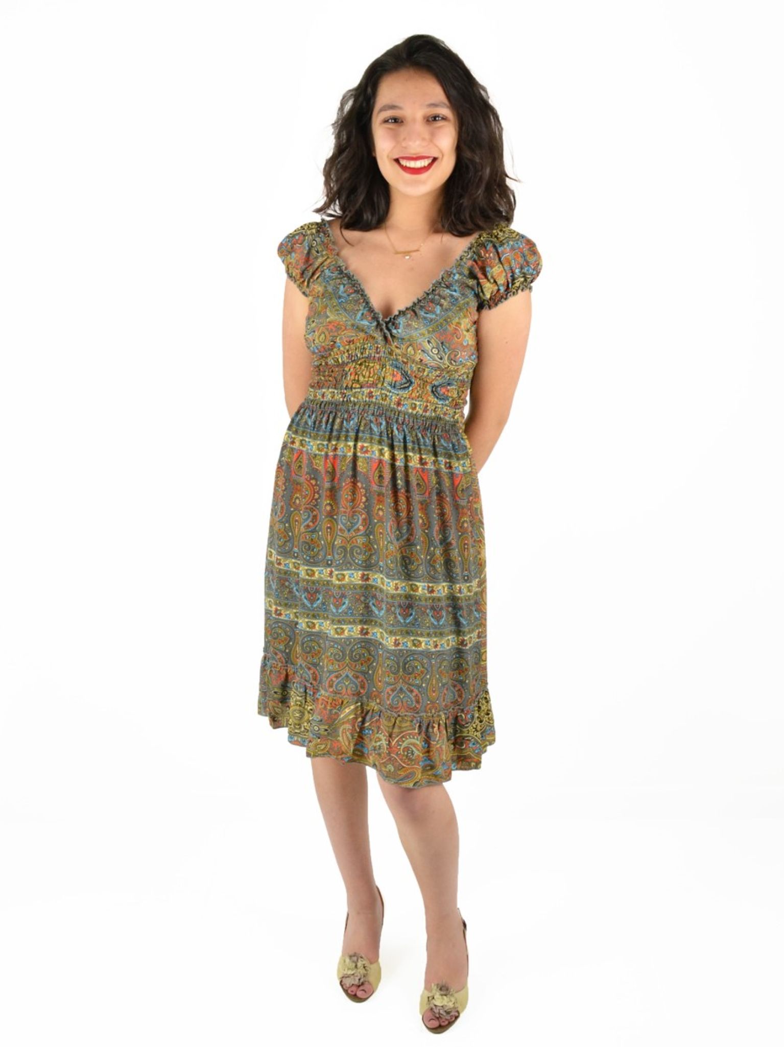 Robe imprimée mi-longue 100% Polyester.