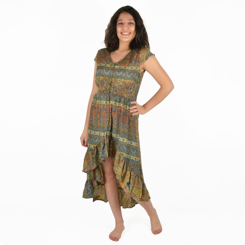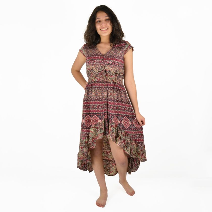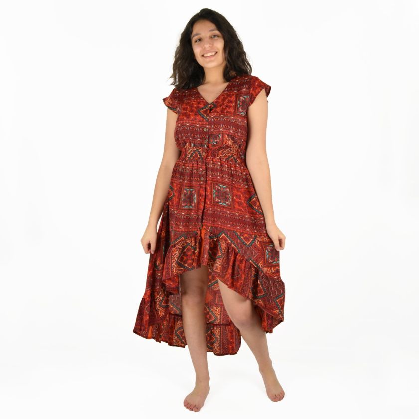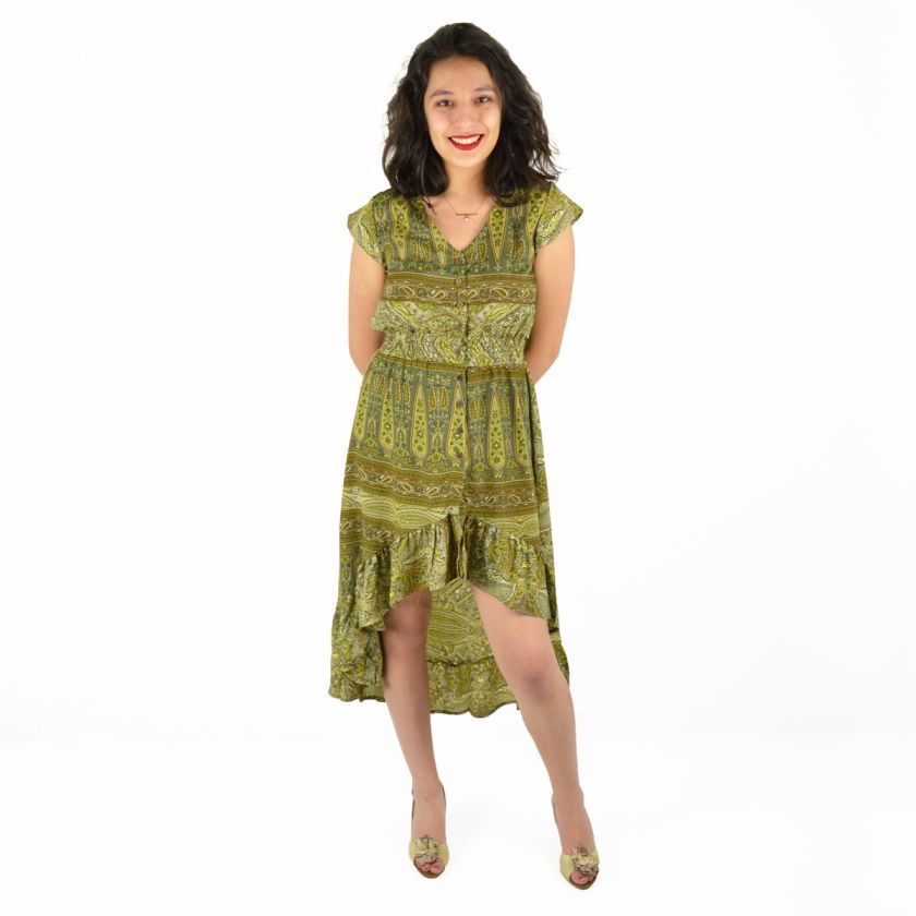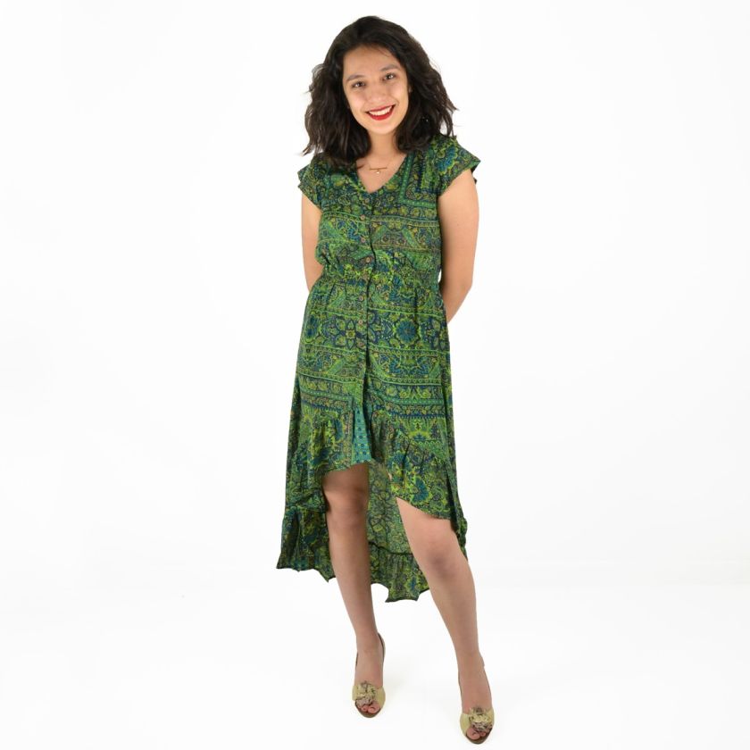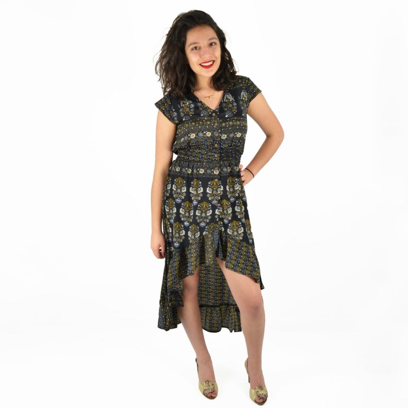 Robe mi-longue à boutons 100% Polyester.