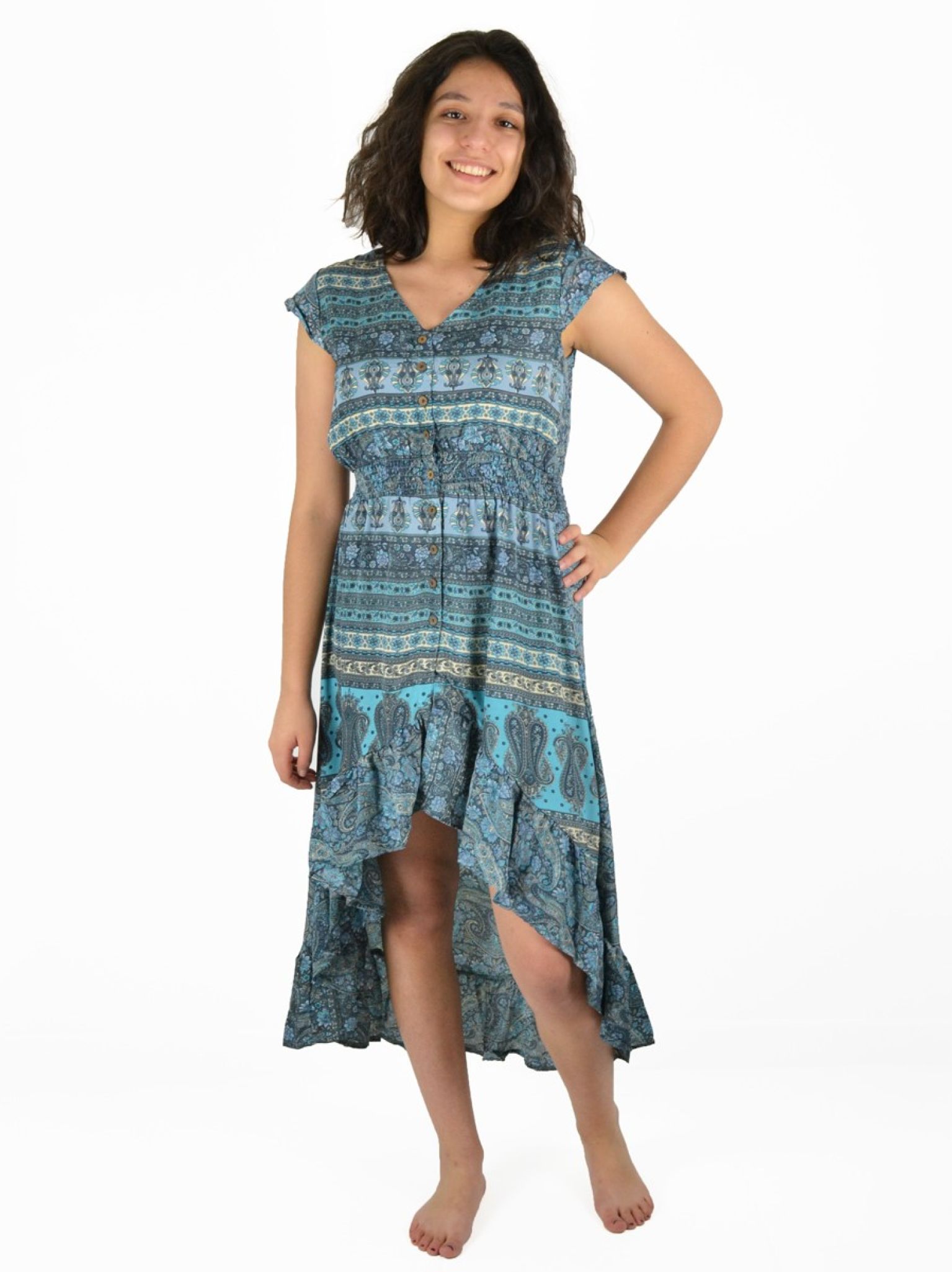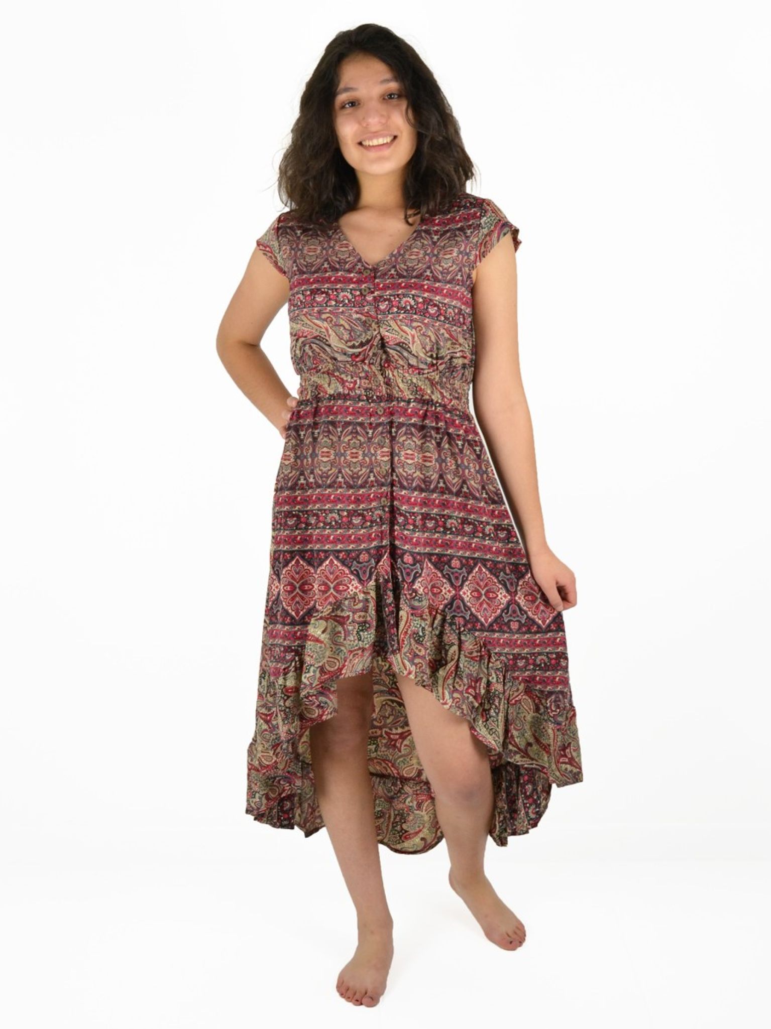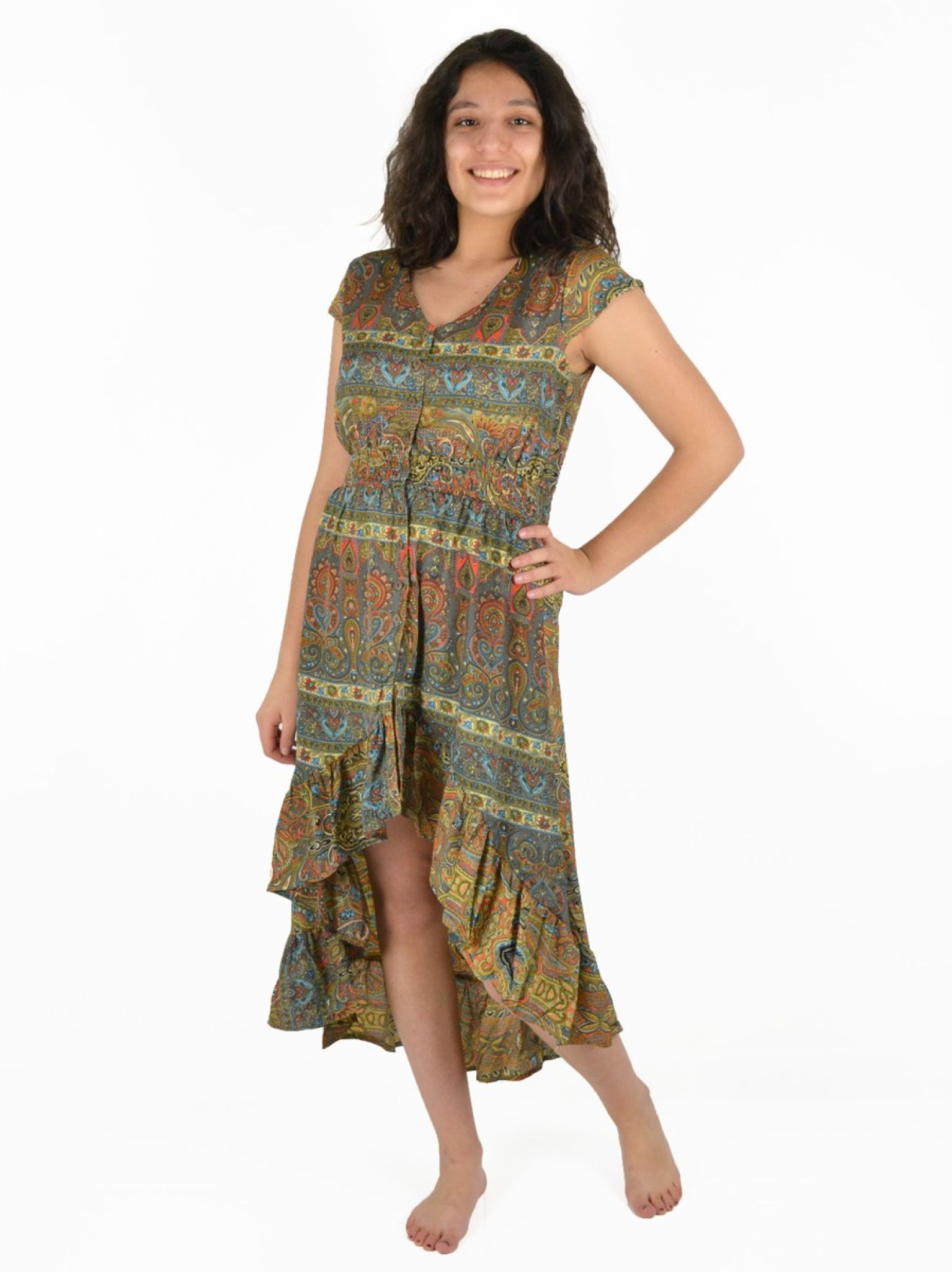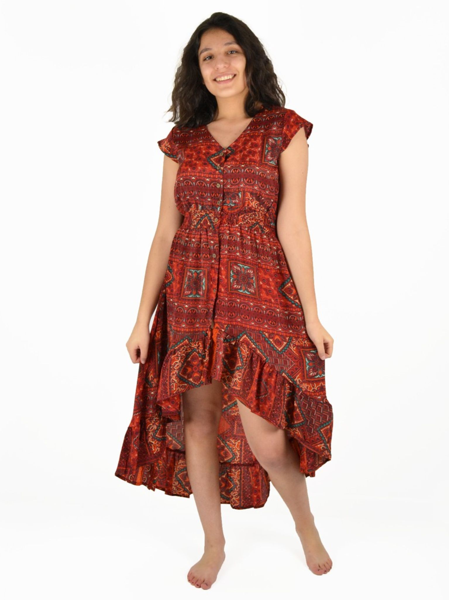 Robe mi-longue à boutons 100% Polyester.