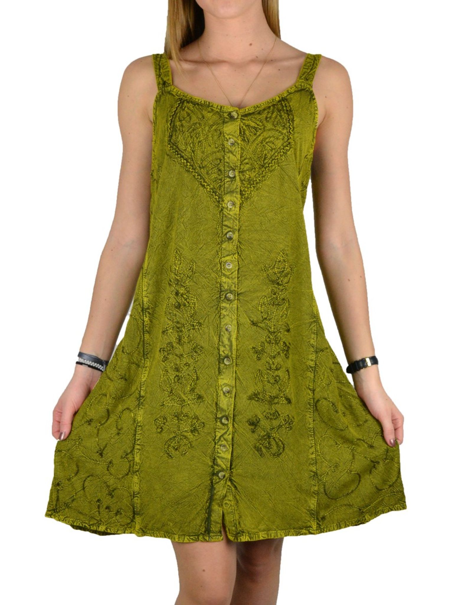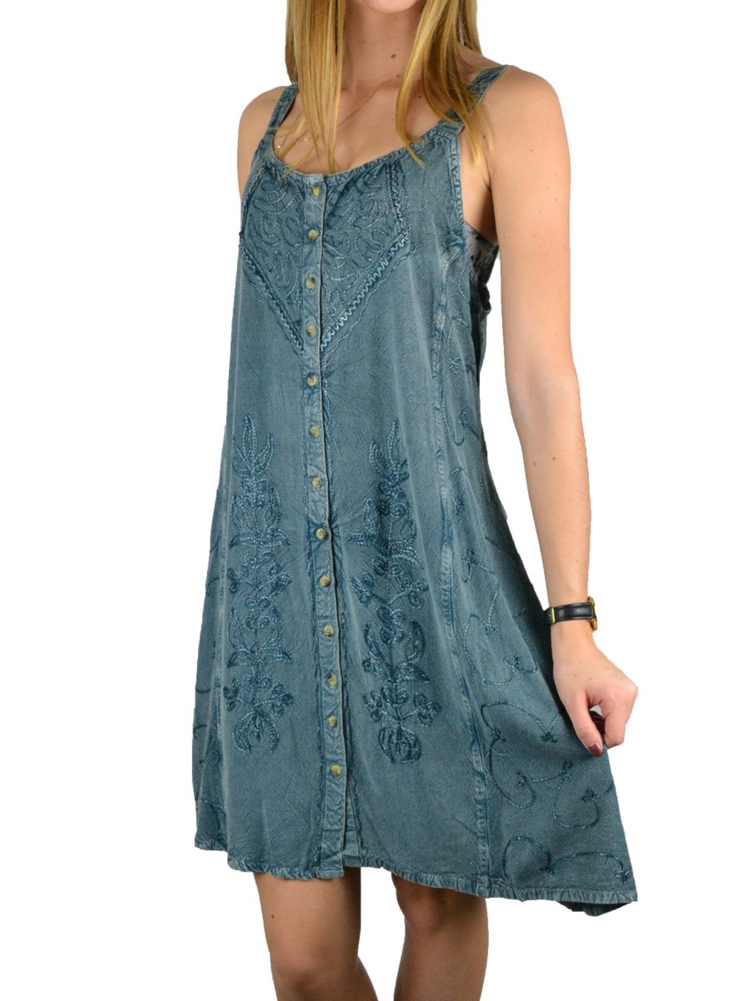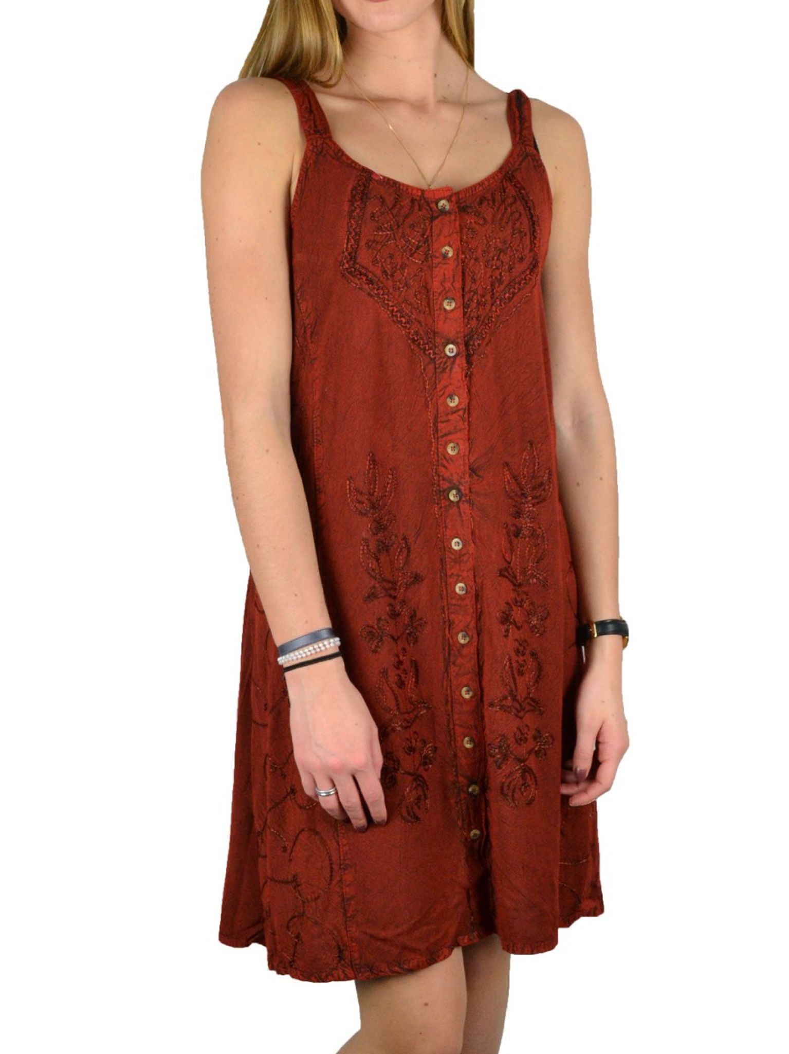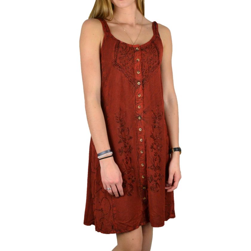 Robe boutons et broderie 100% viscose.