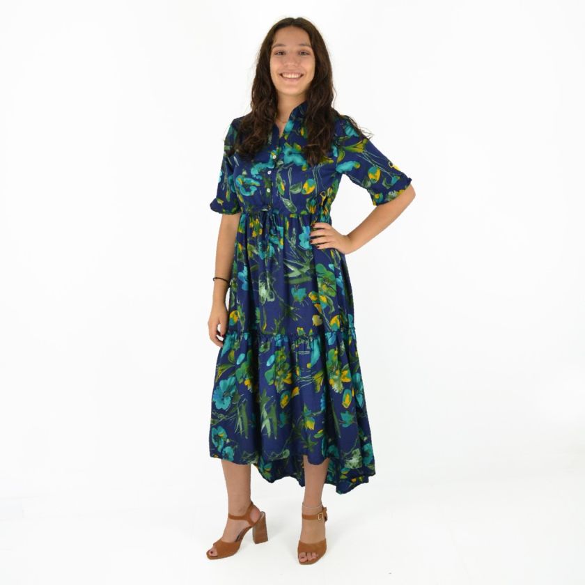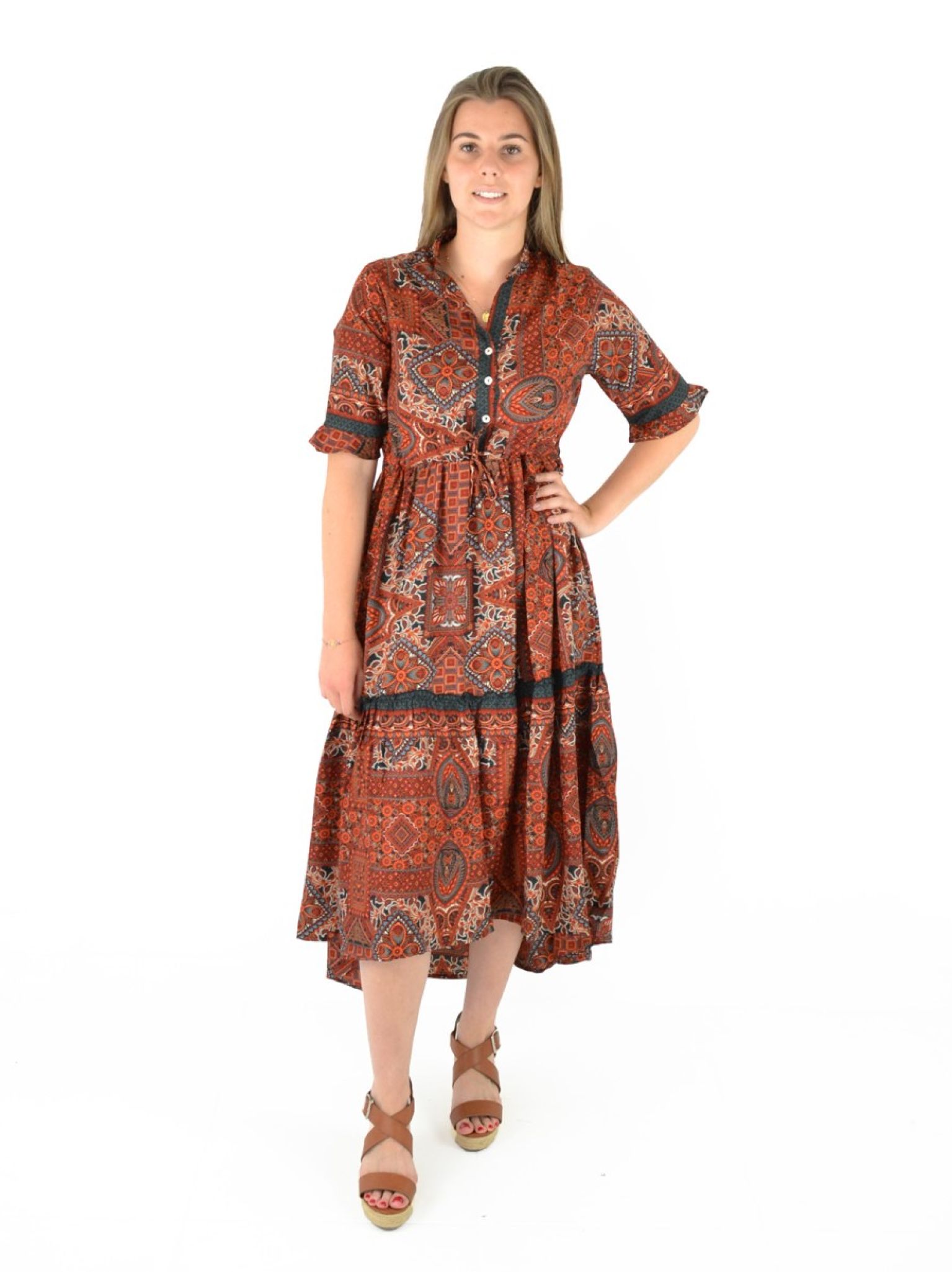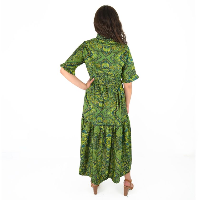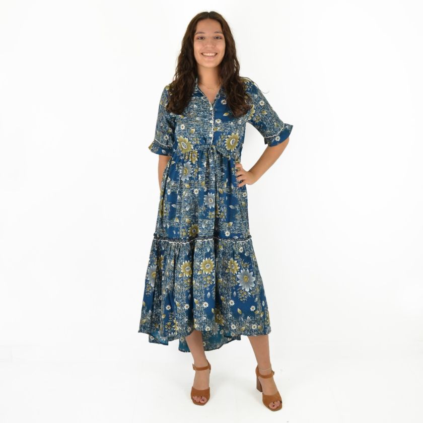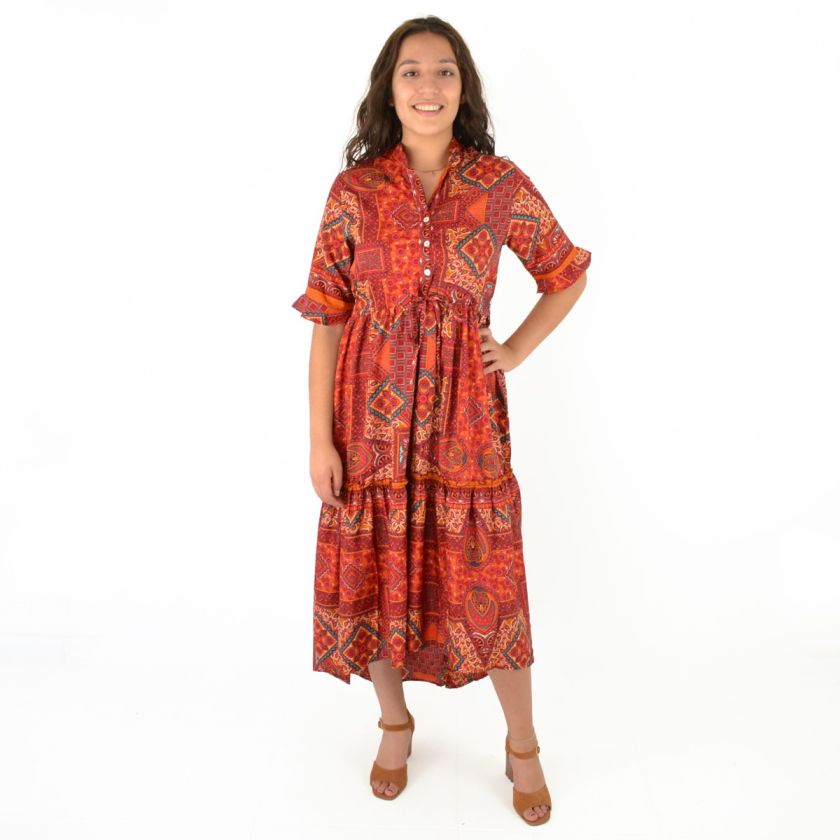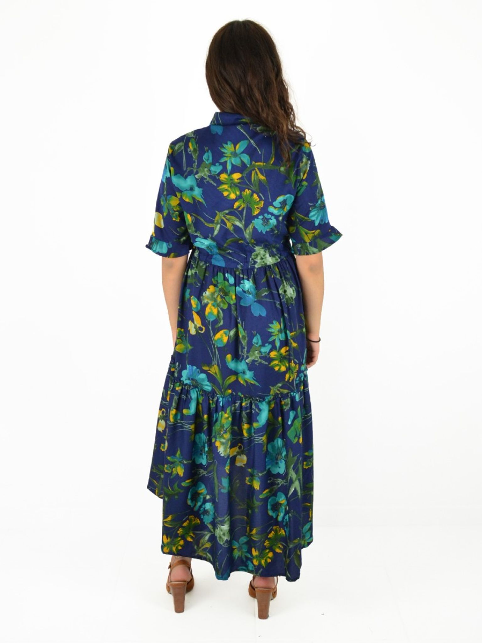 Robe longue manche trois quarts imprimée 100% Polyester.