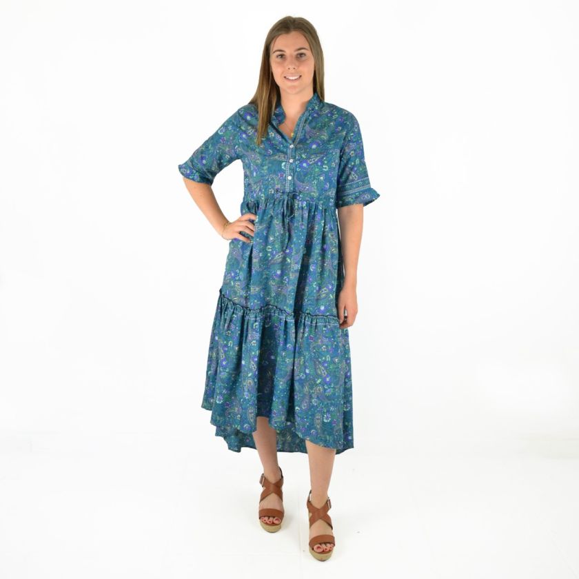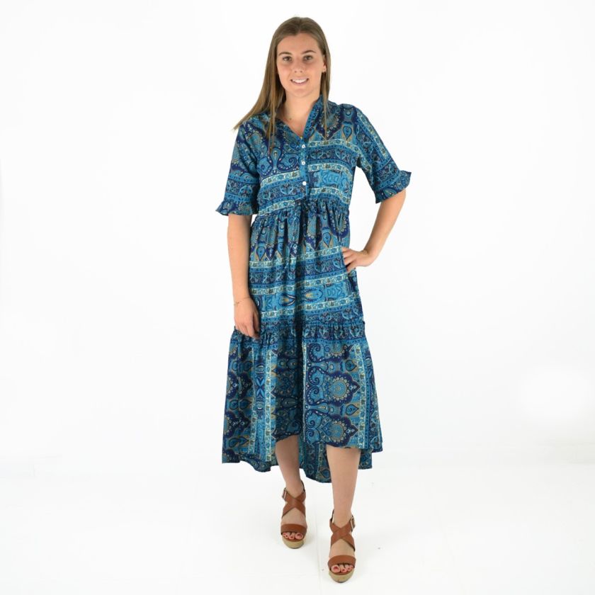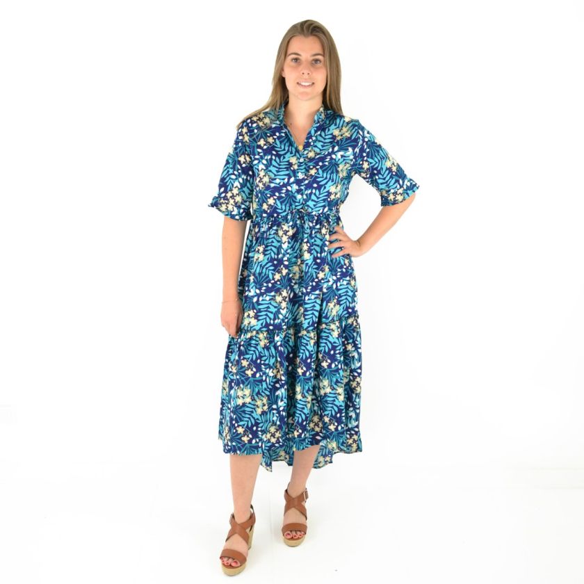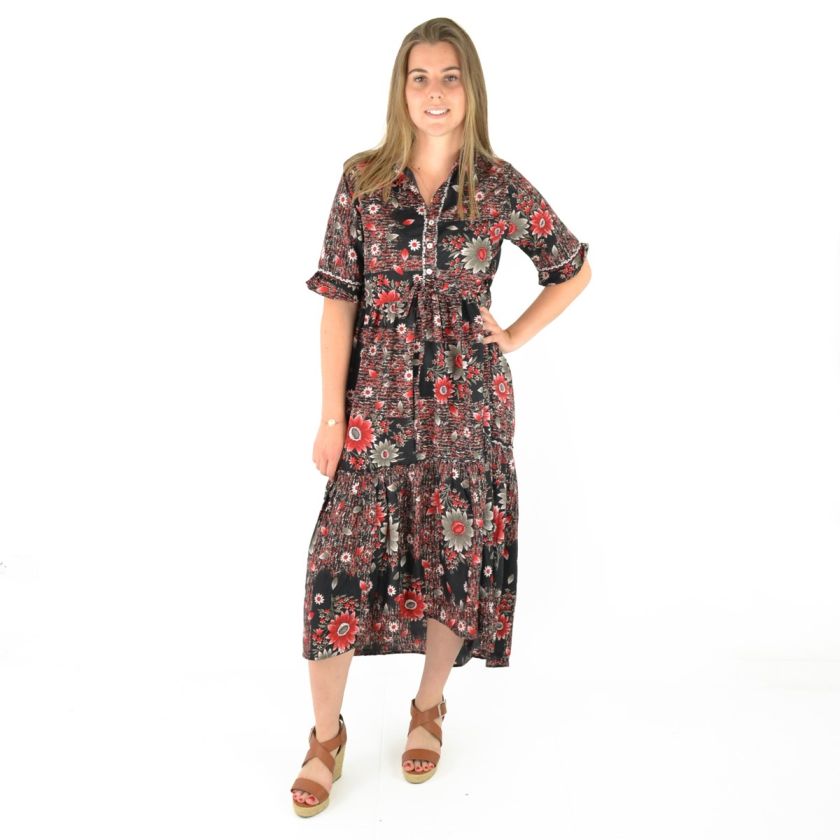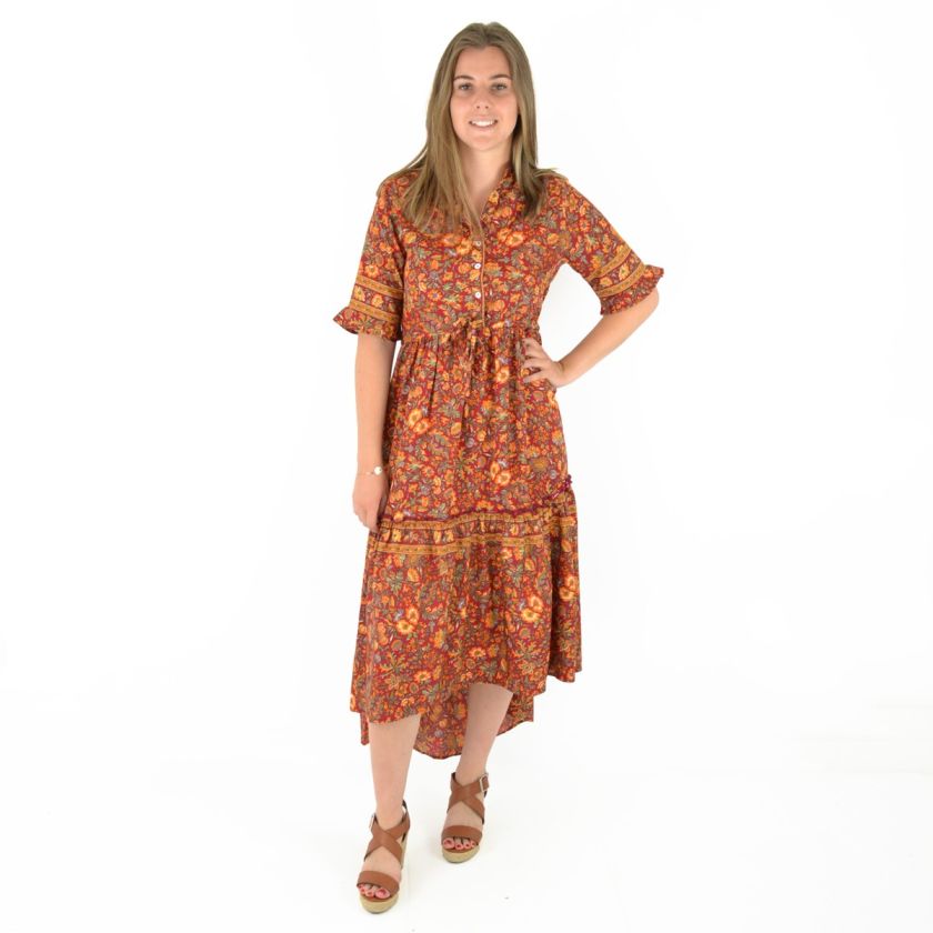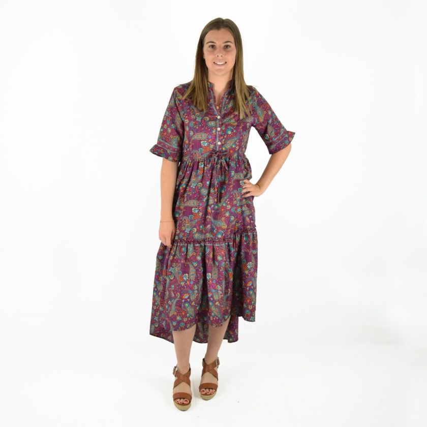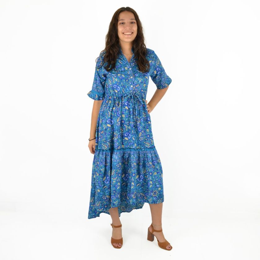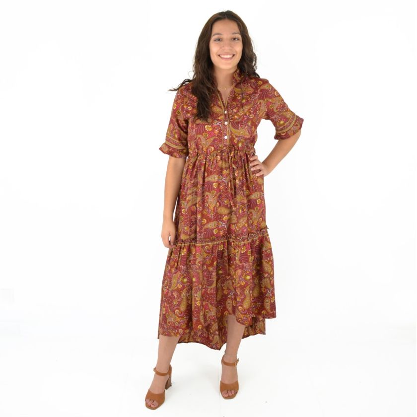 Robe longue manche trois quarts imprimée 100% Polyester.
