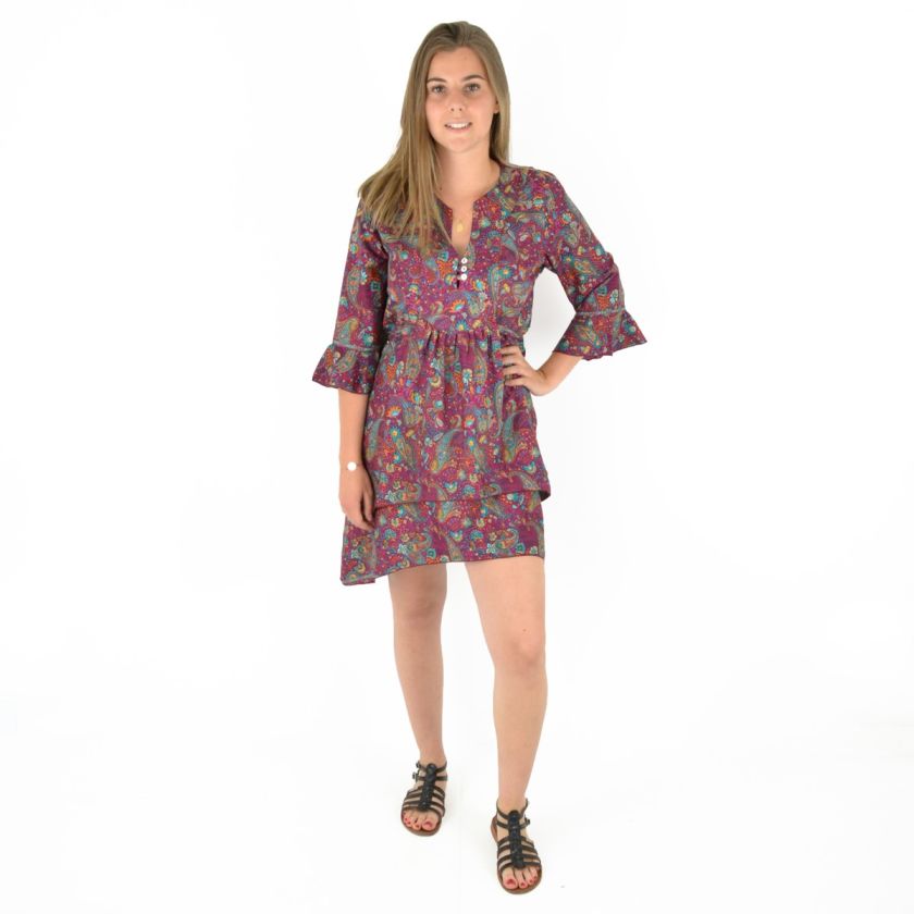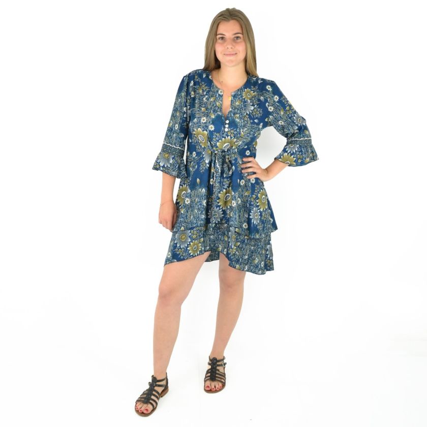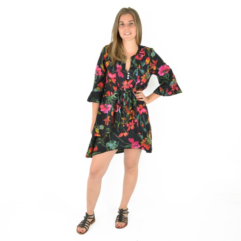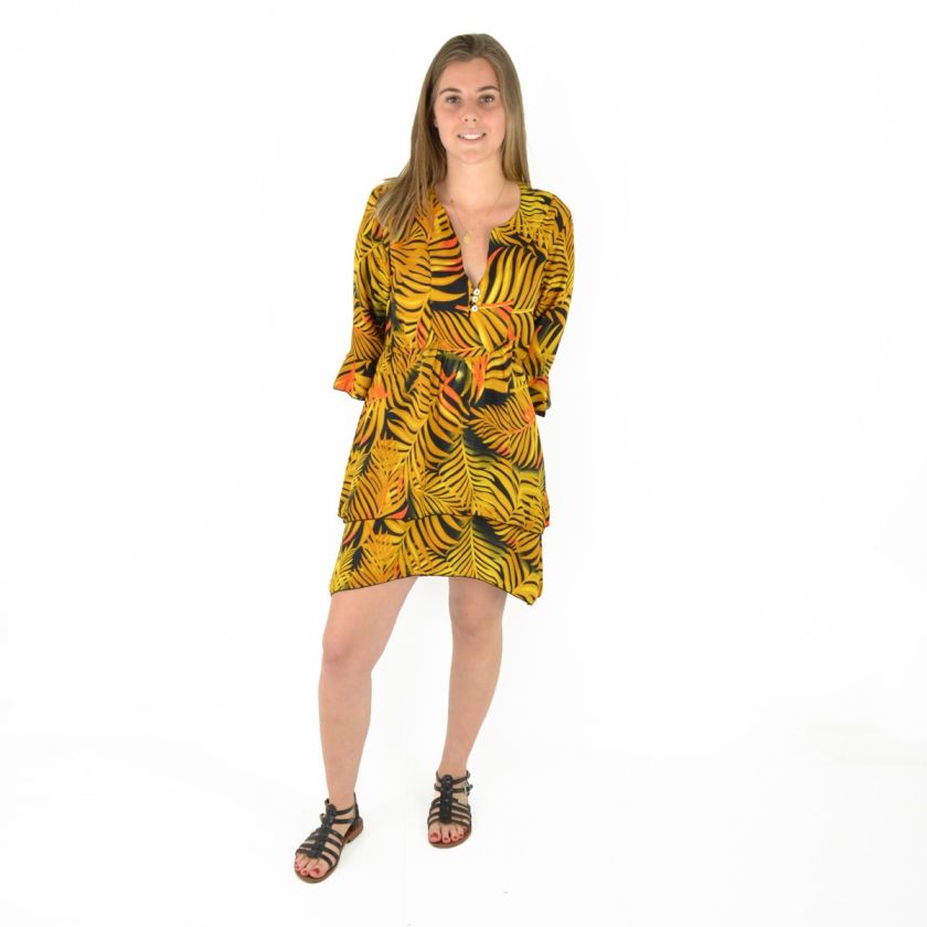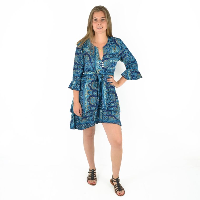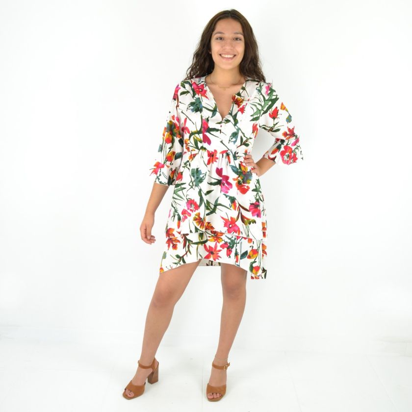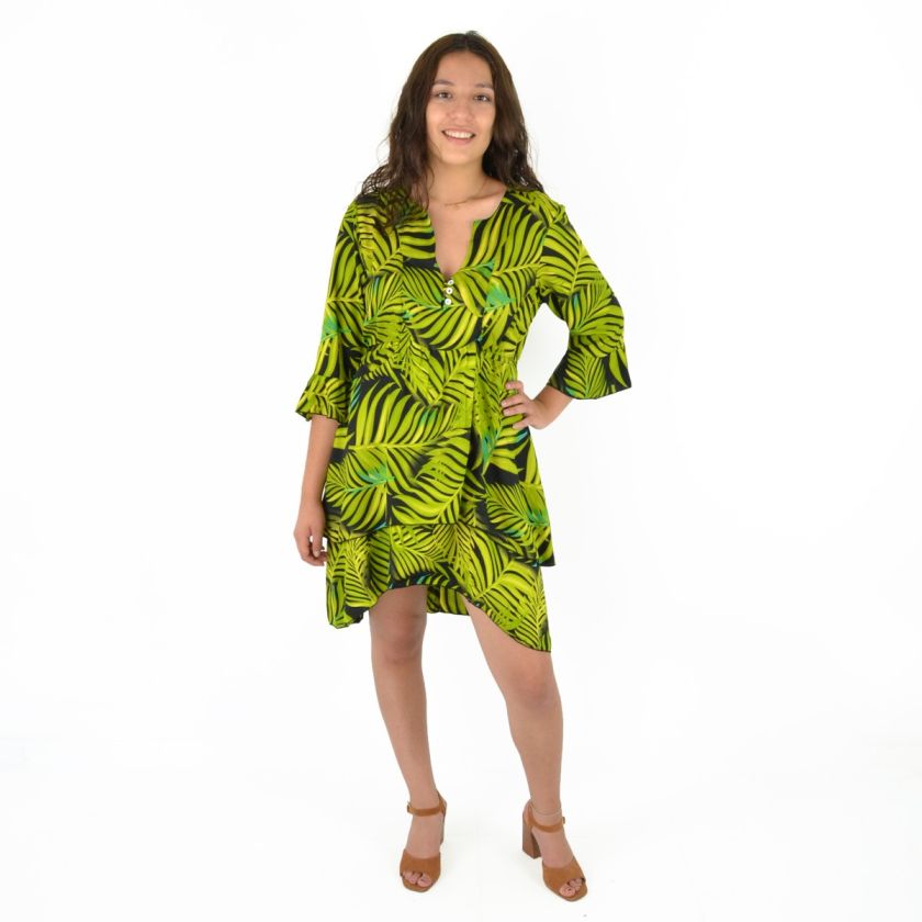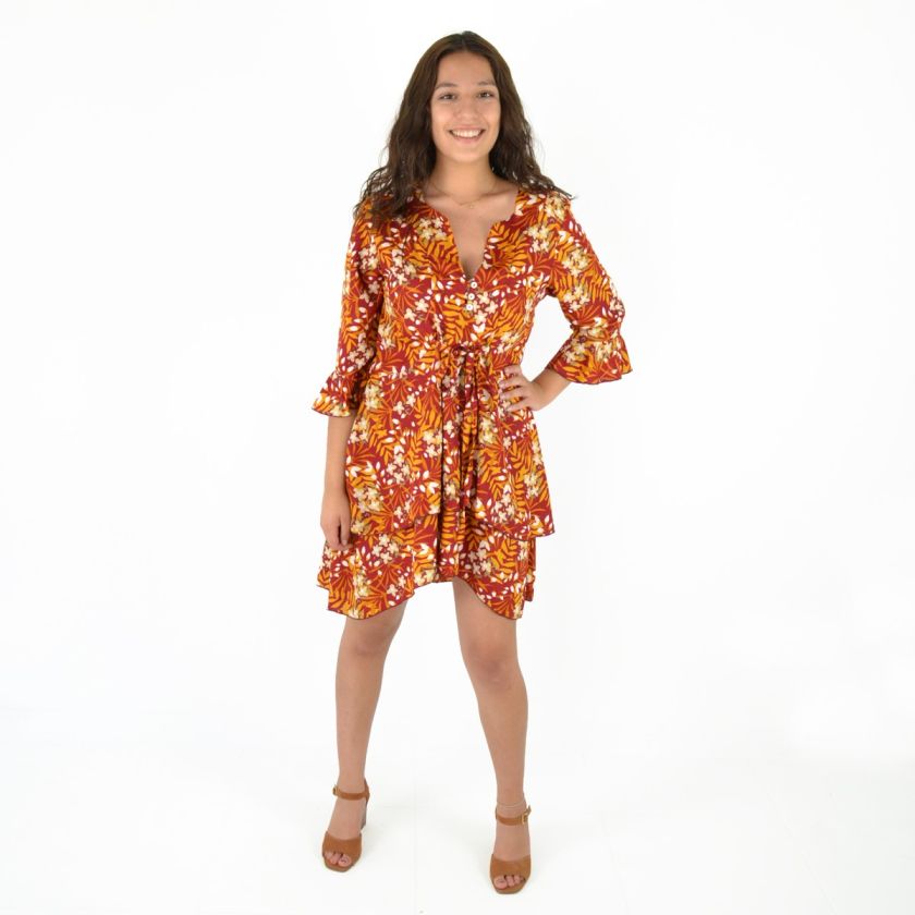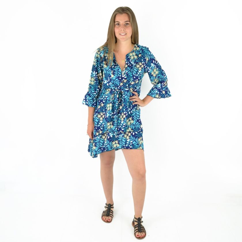 Robe courte manche trois quarts imprimée 100% Polyester.