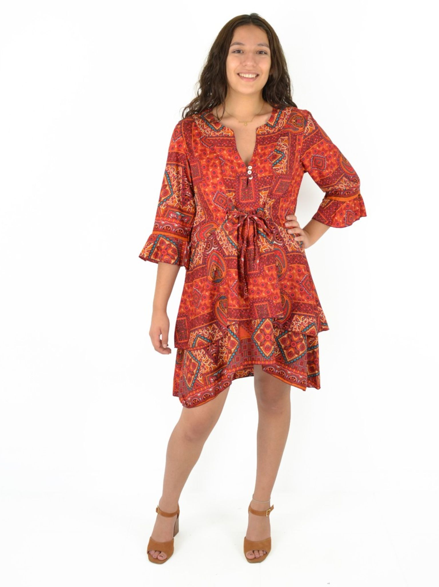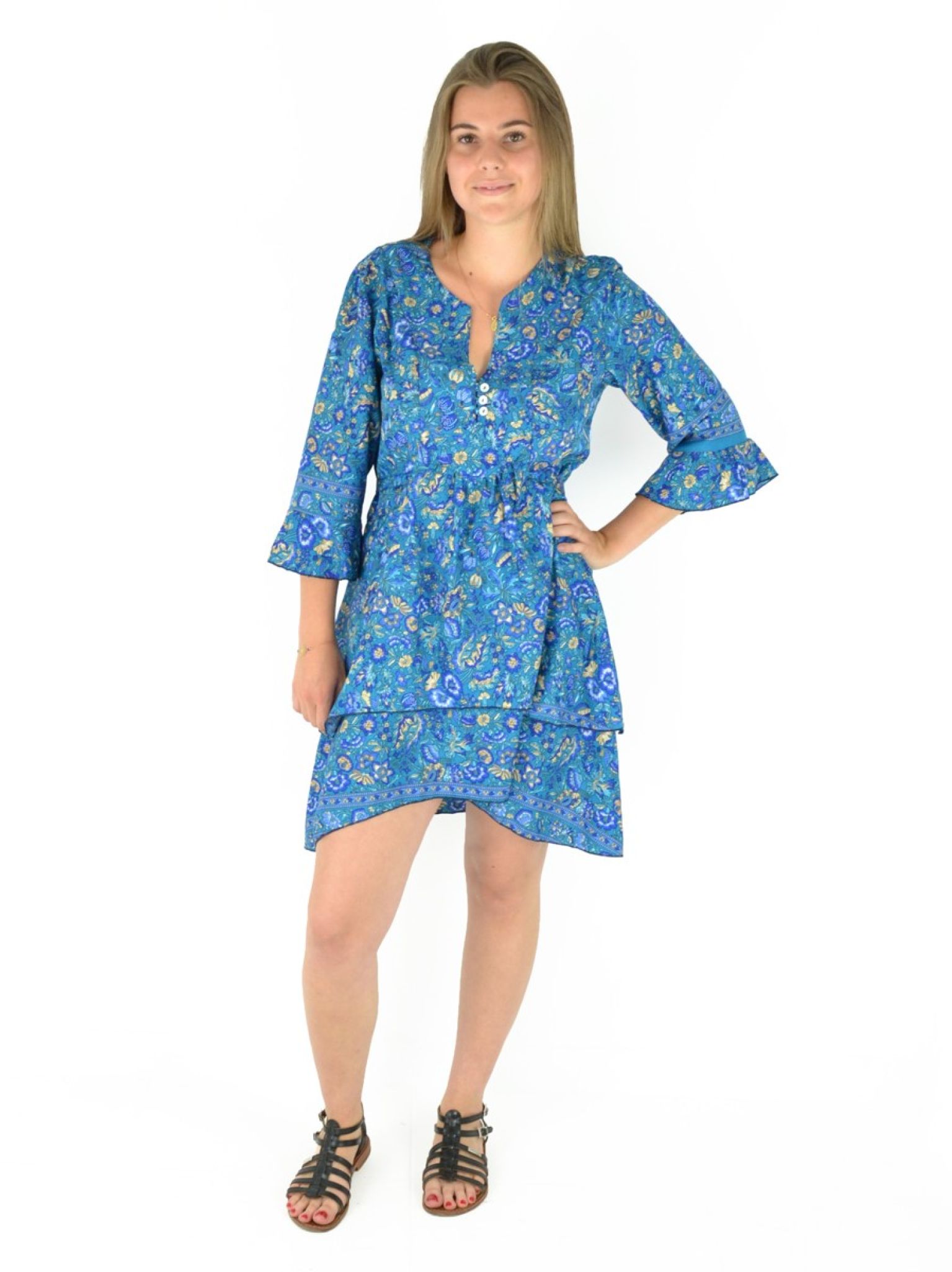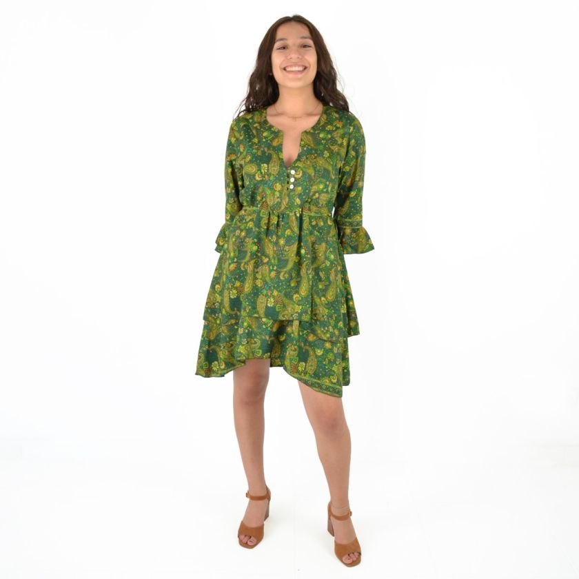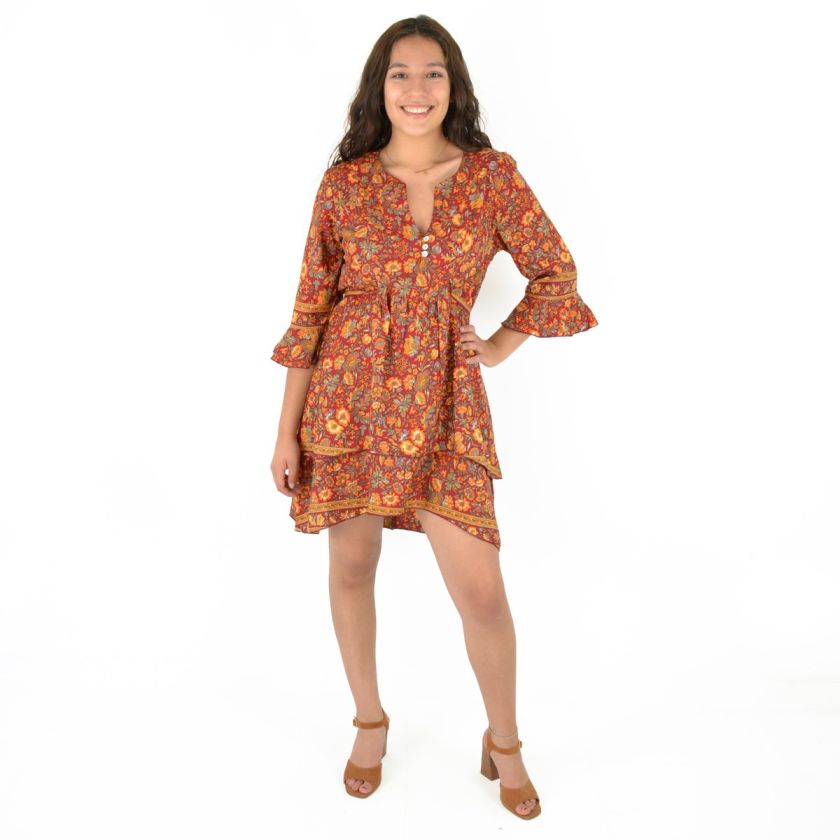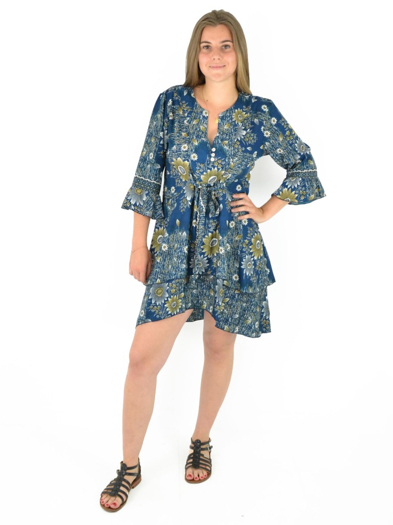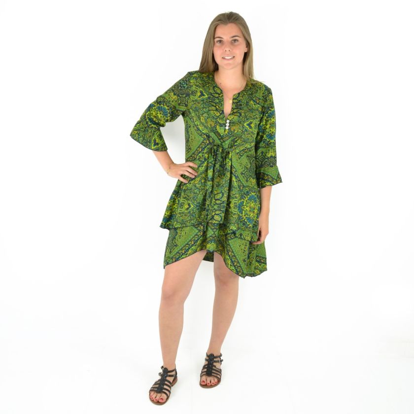 Robe courte manche trois quarts imprimée 100% Polyester.