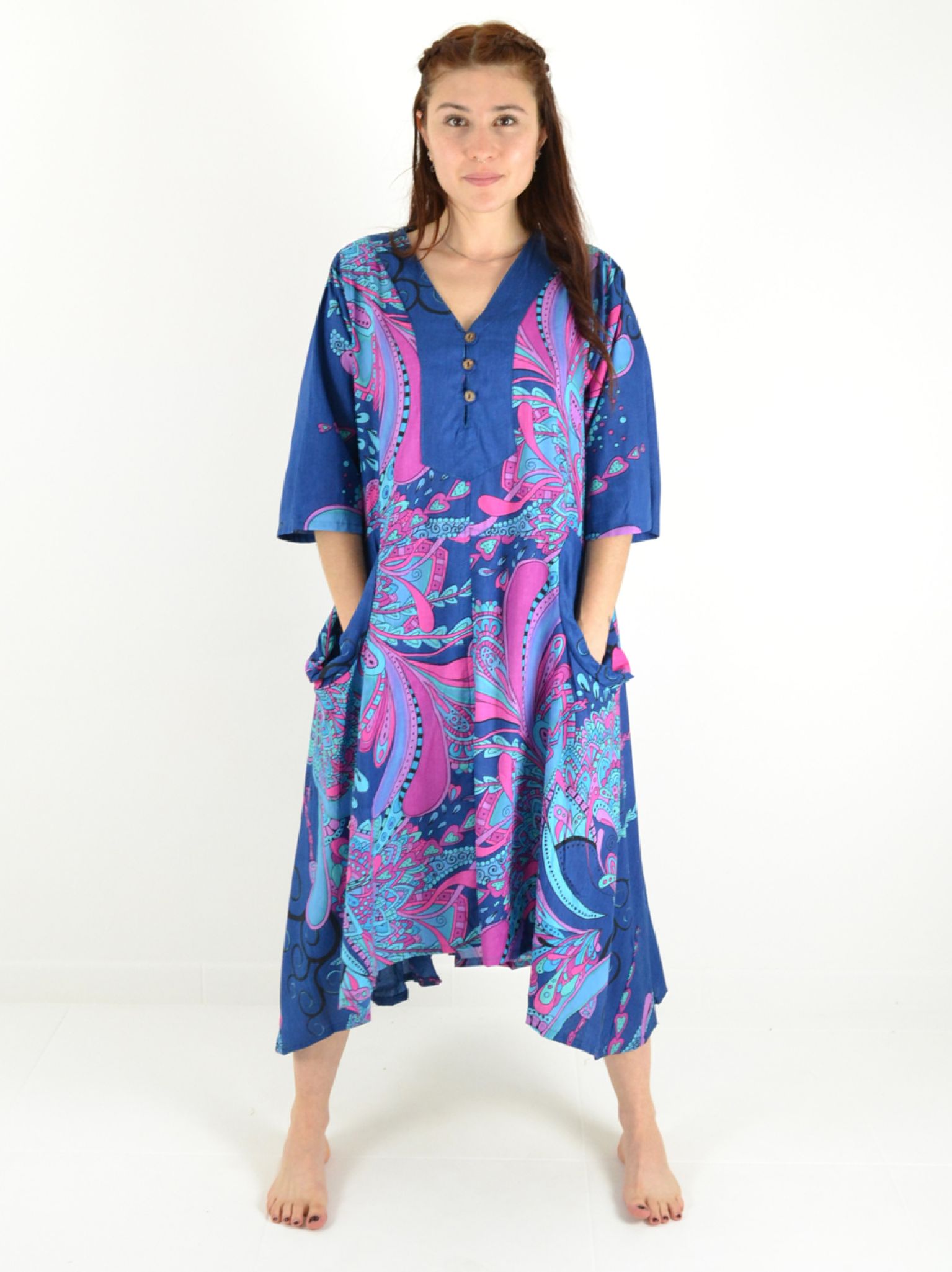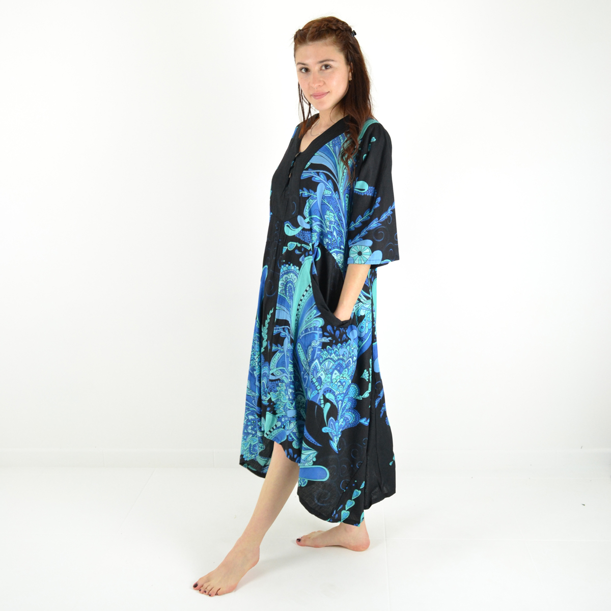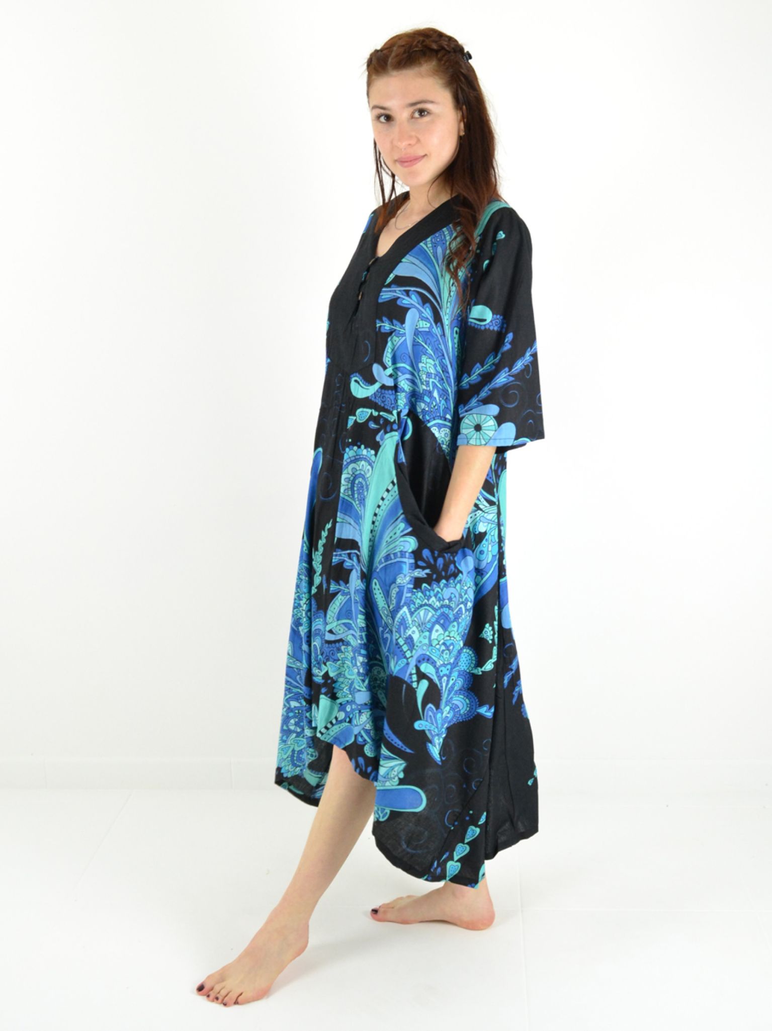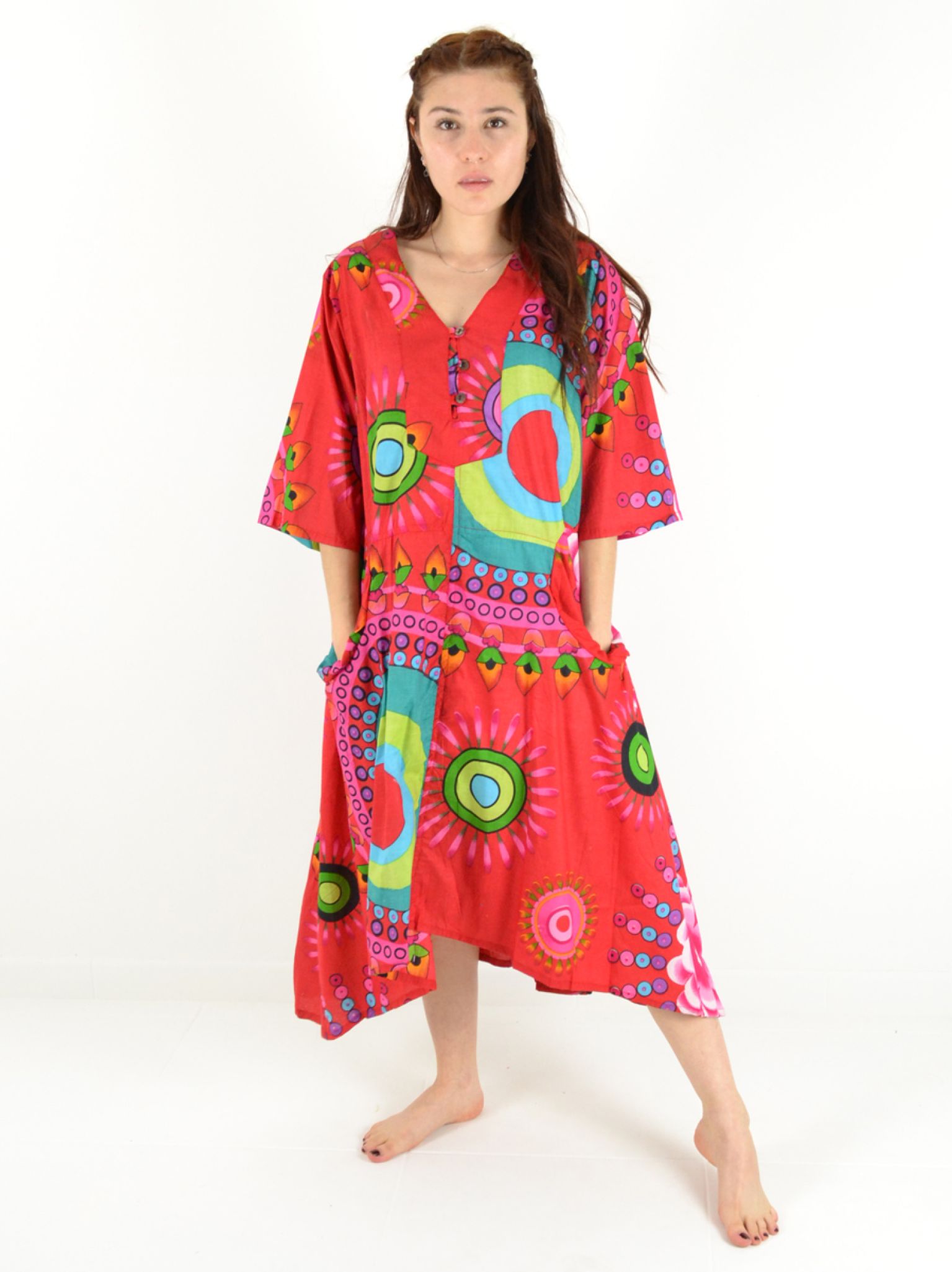 Découvrez cette robe longue 100% coton qui allie élégance discrète et fonctionnalité au quotidien.