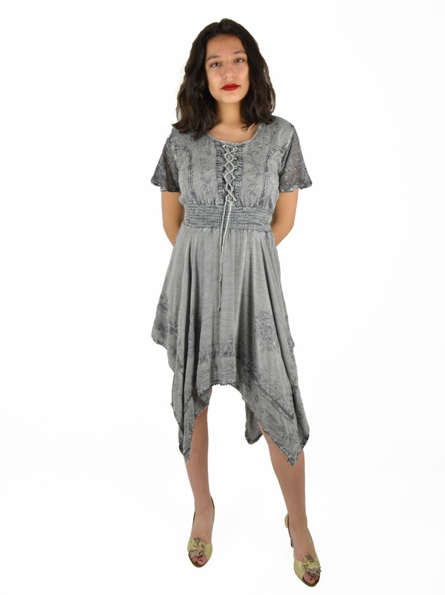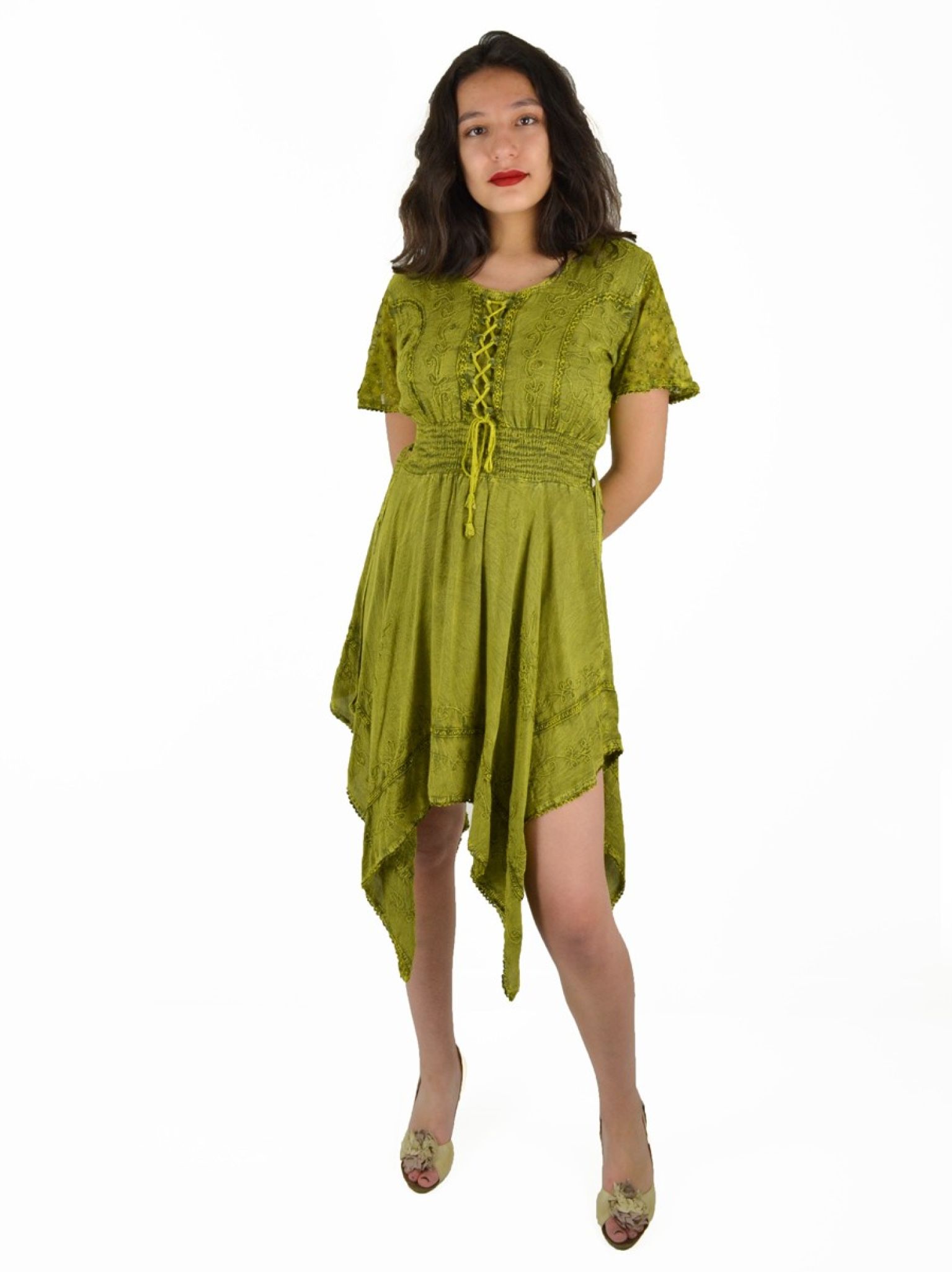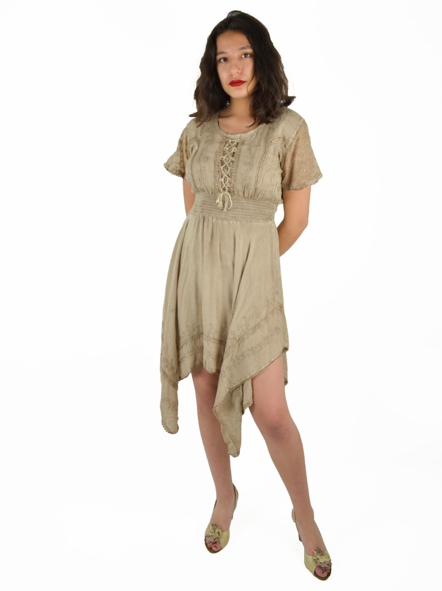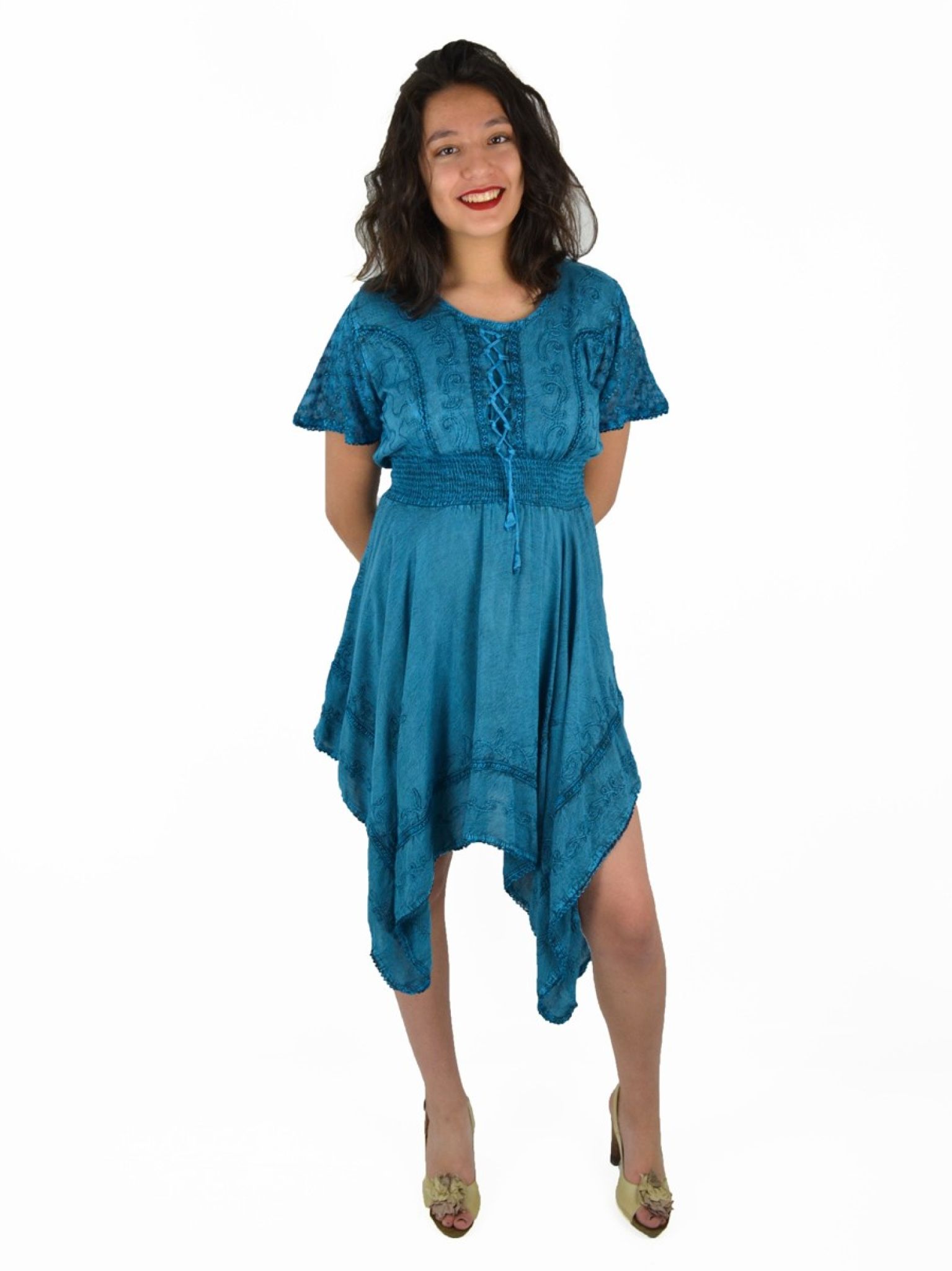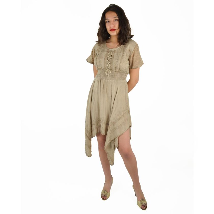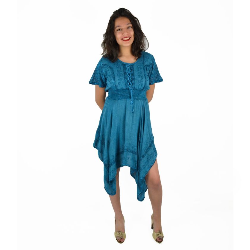 Robe Manches courtes et borderie. 100% viscose.