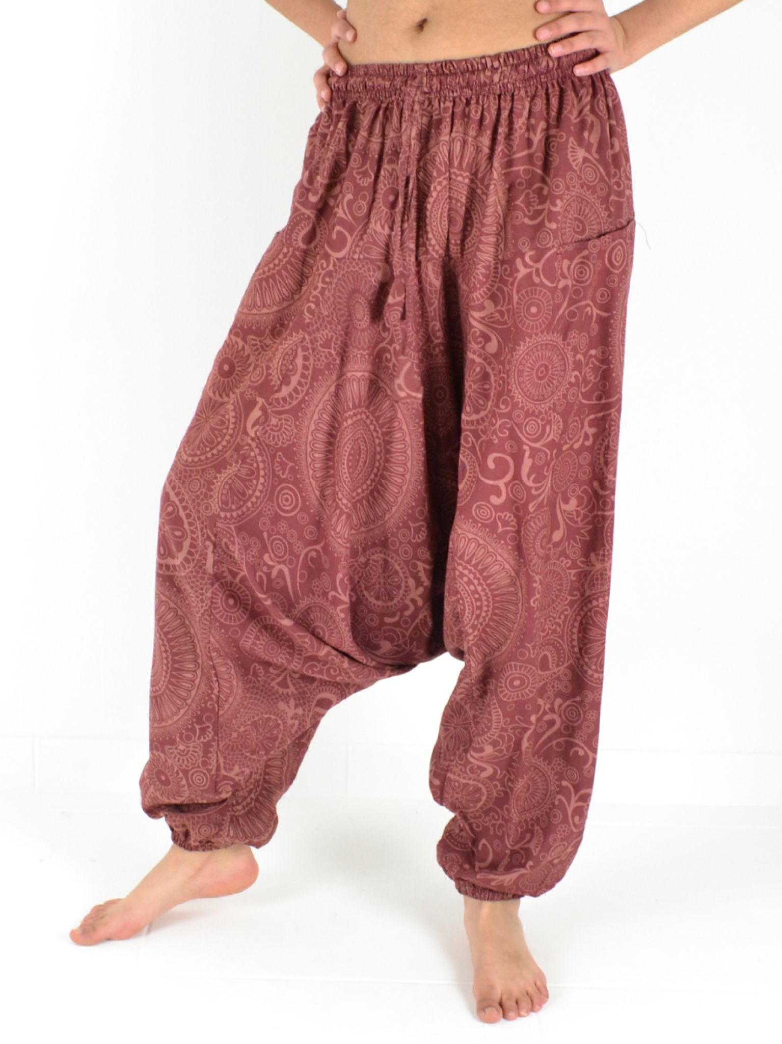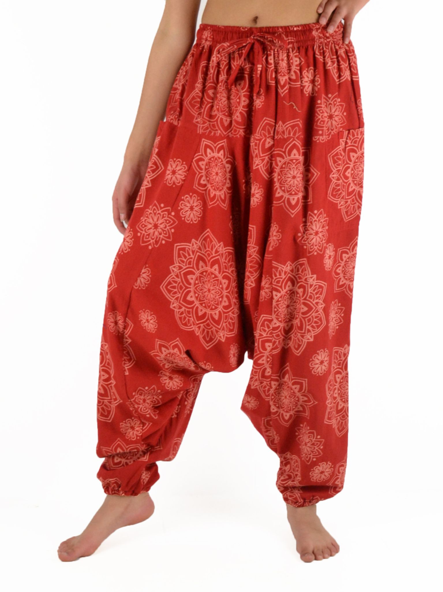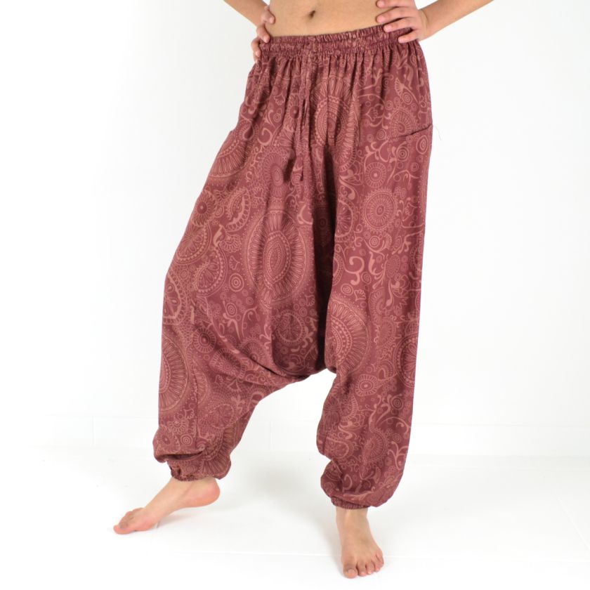 Avec sa coupe originale, ses élastiques à la taille et aux chevilles et ses imprimés ethniques, il offre un look unique et décontracté.