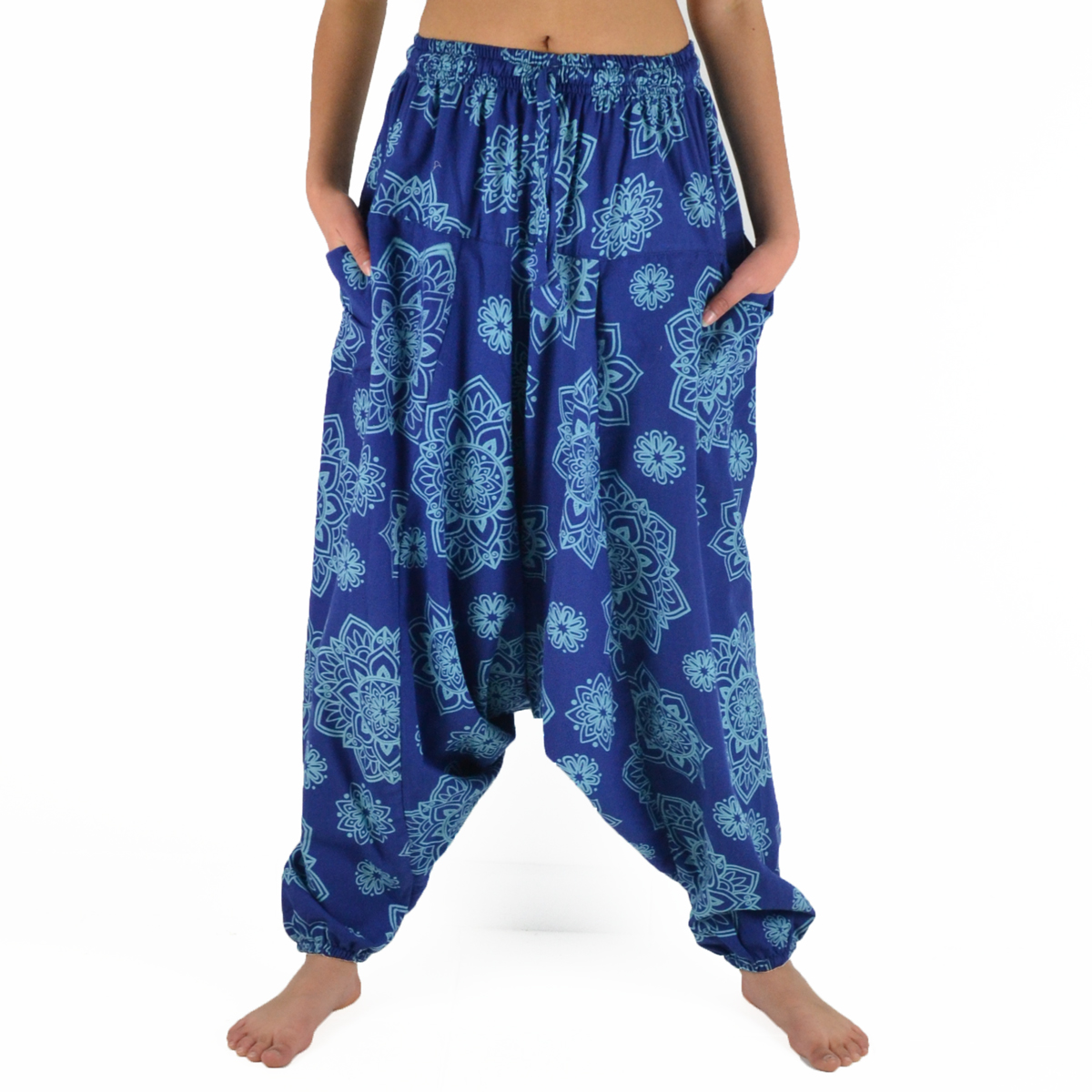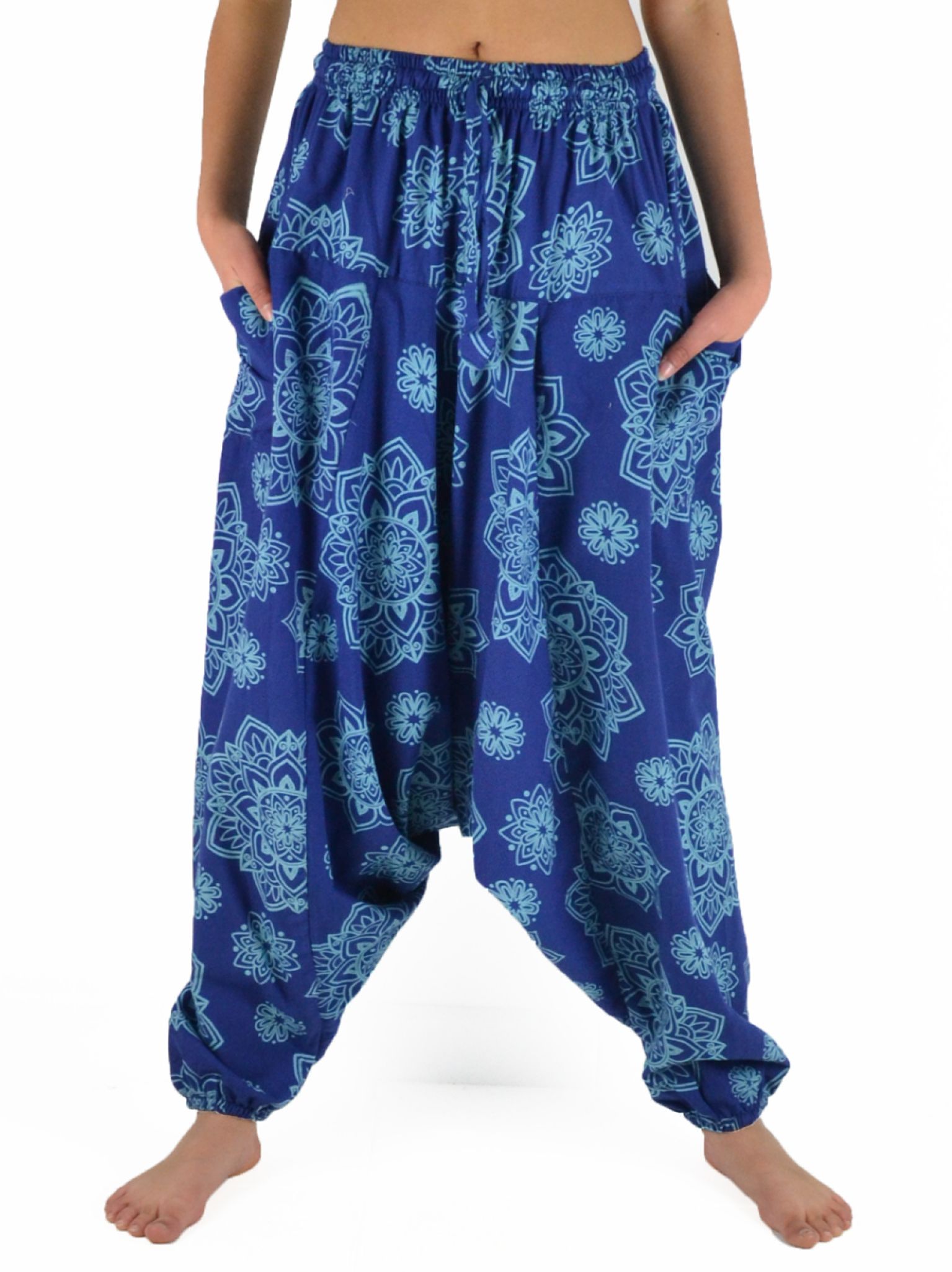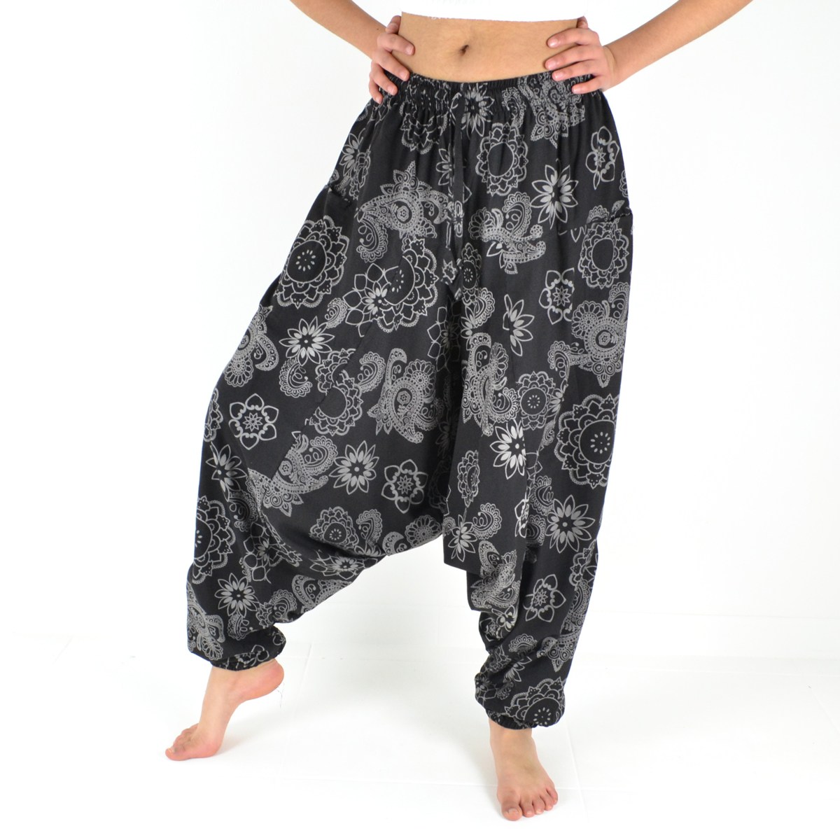 Avec sa coupe originale, ses élastiques à la taille et aux chevilles et ses imprimés ethniques, il offre un look unique et décontracté.