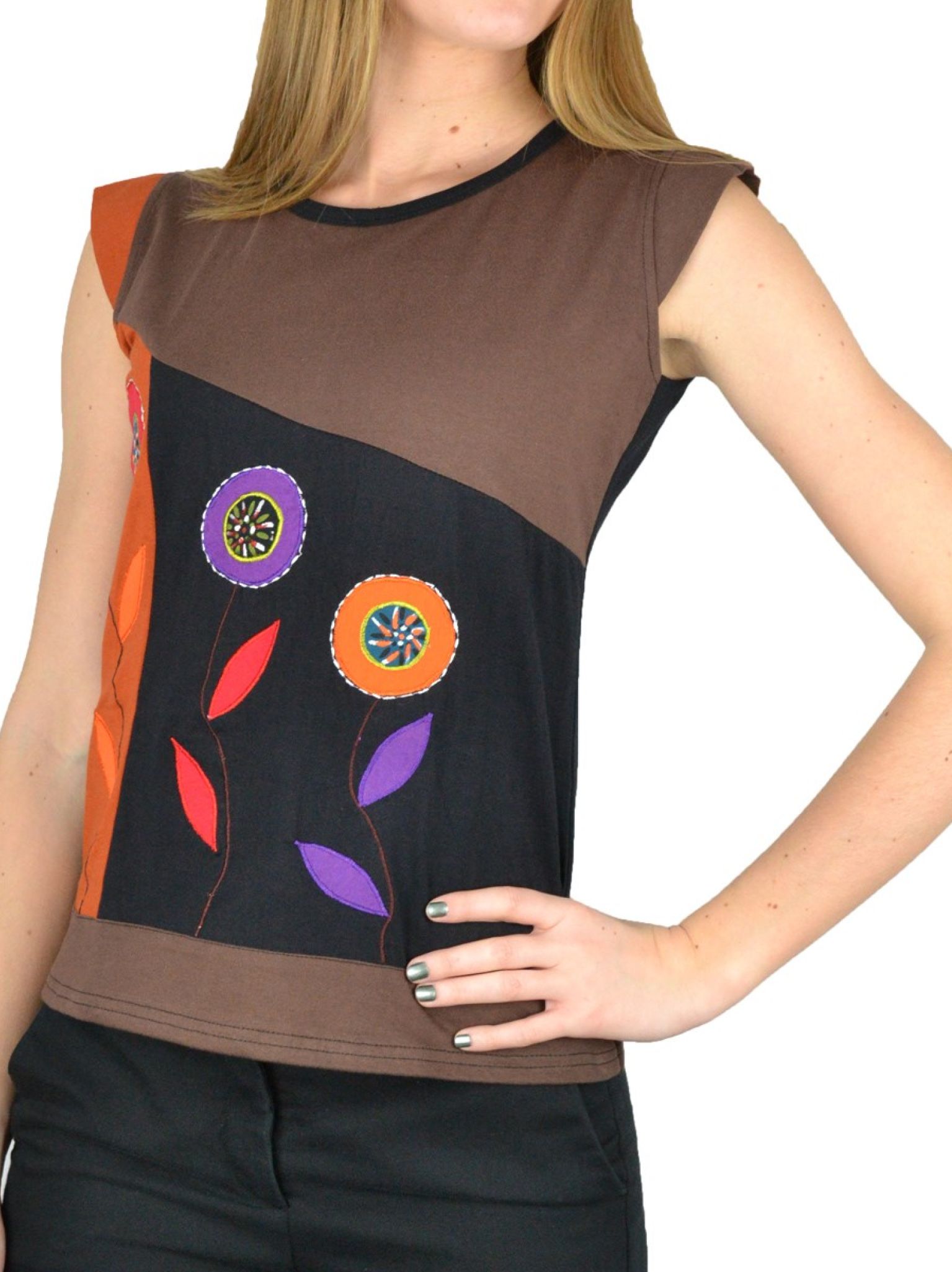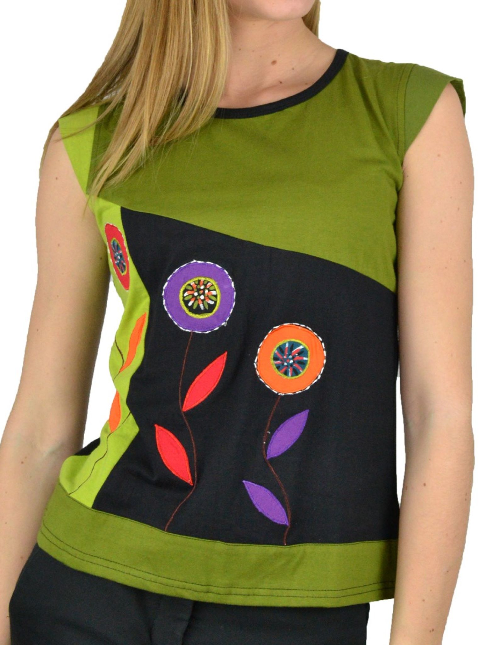 Top fleurs brodées coton