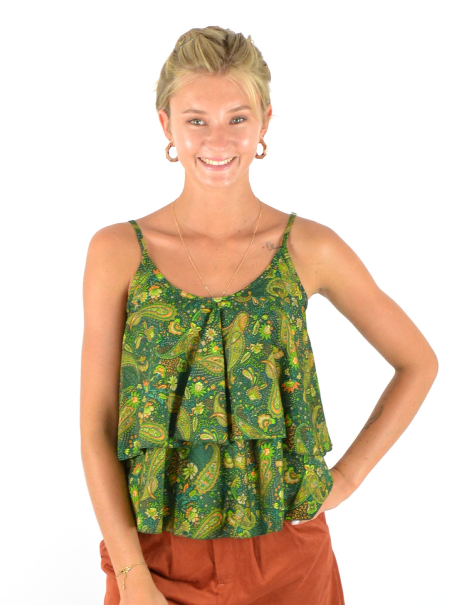 Top imprimé à bretelles fines.
