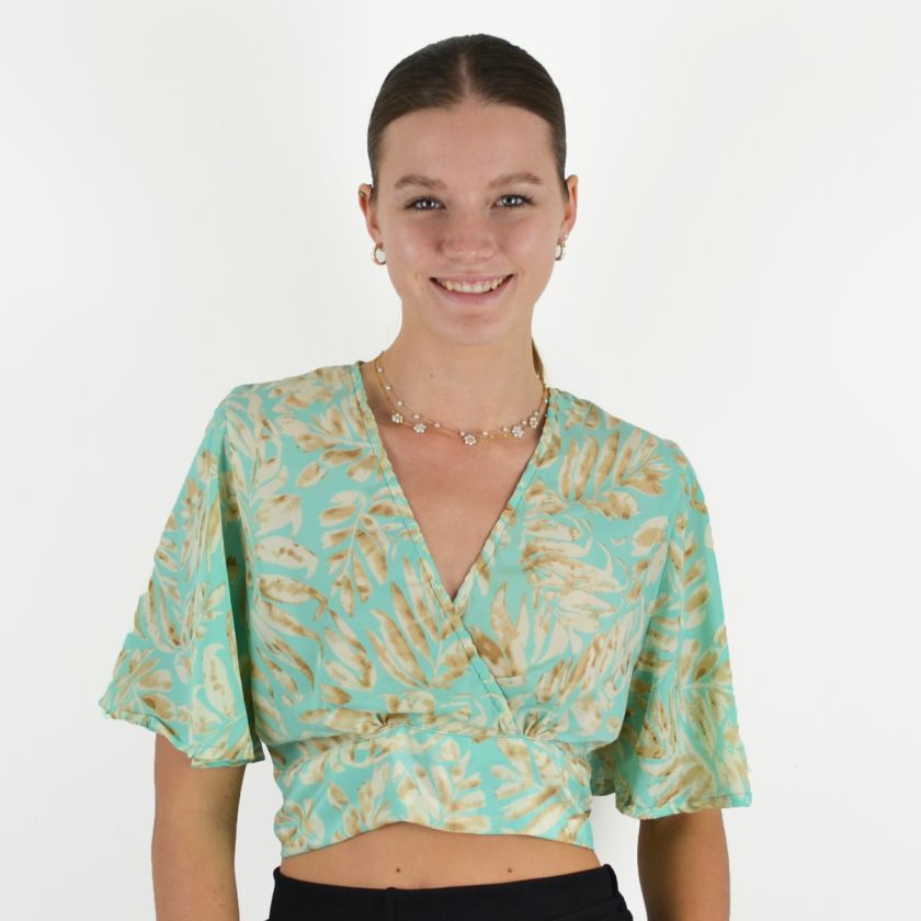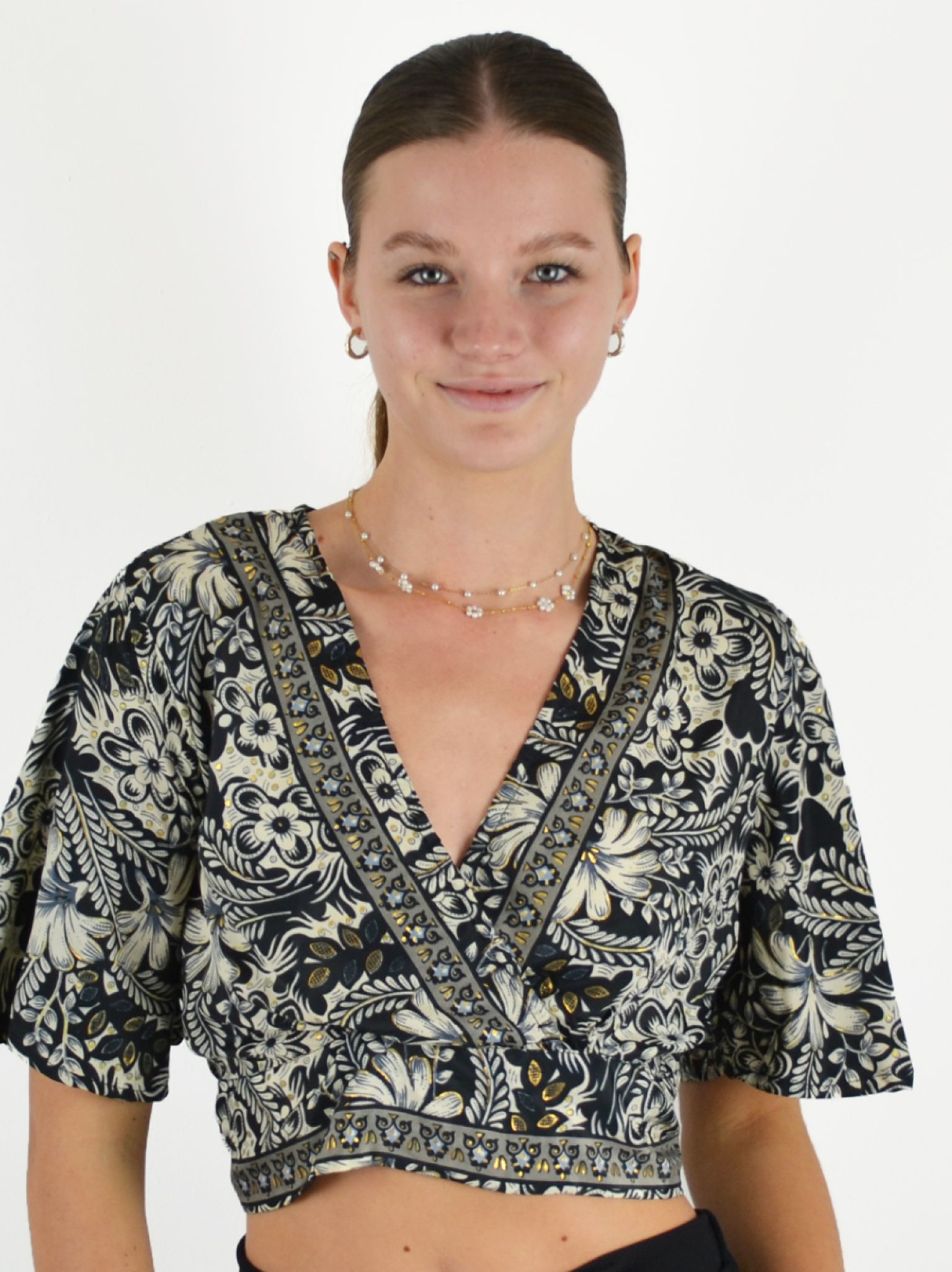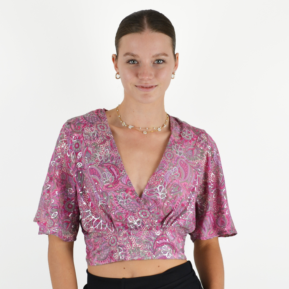 Ce top en 100% polyester léger et fluide offre une silhouette flatteuse.