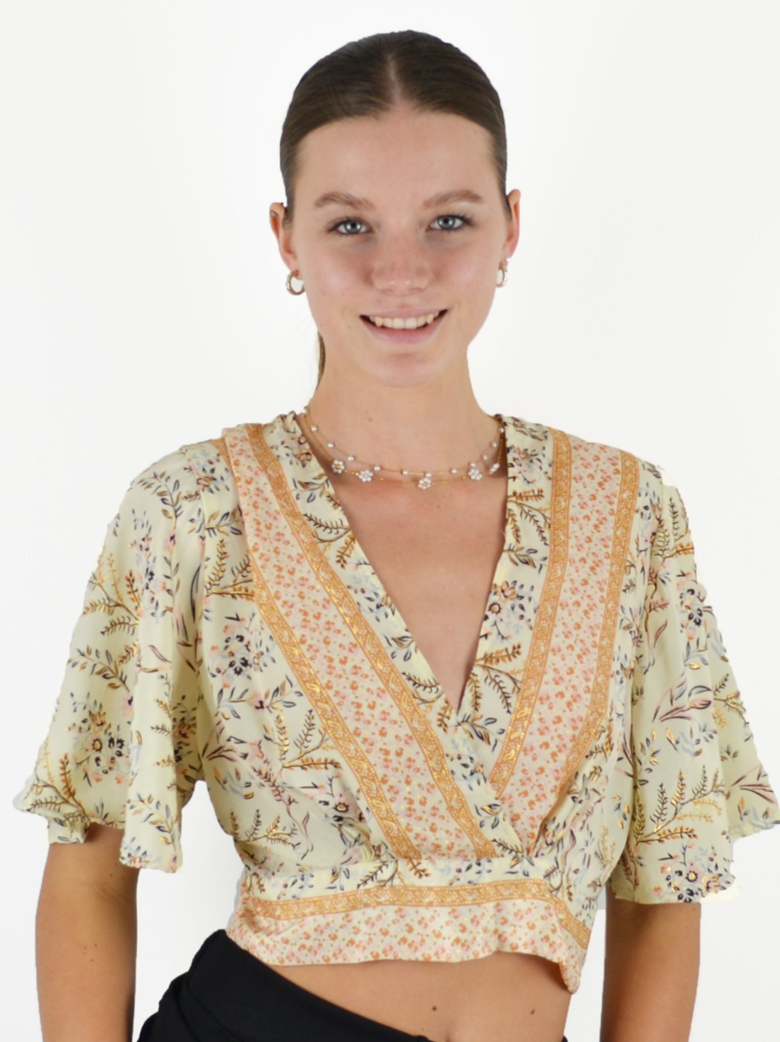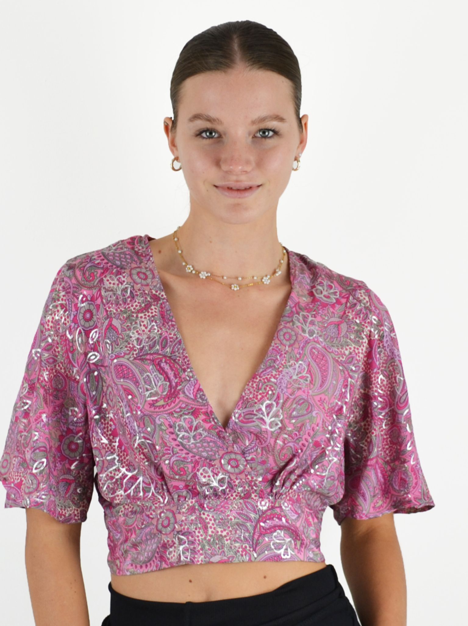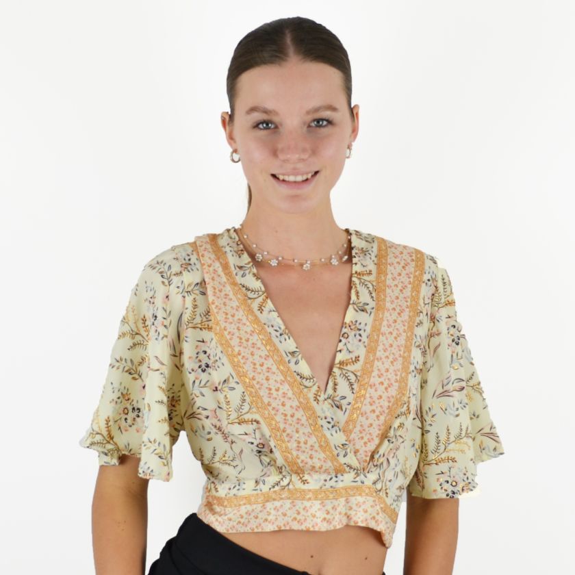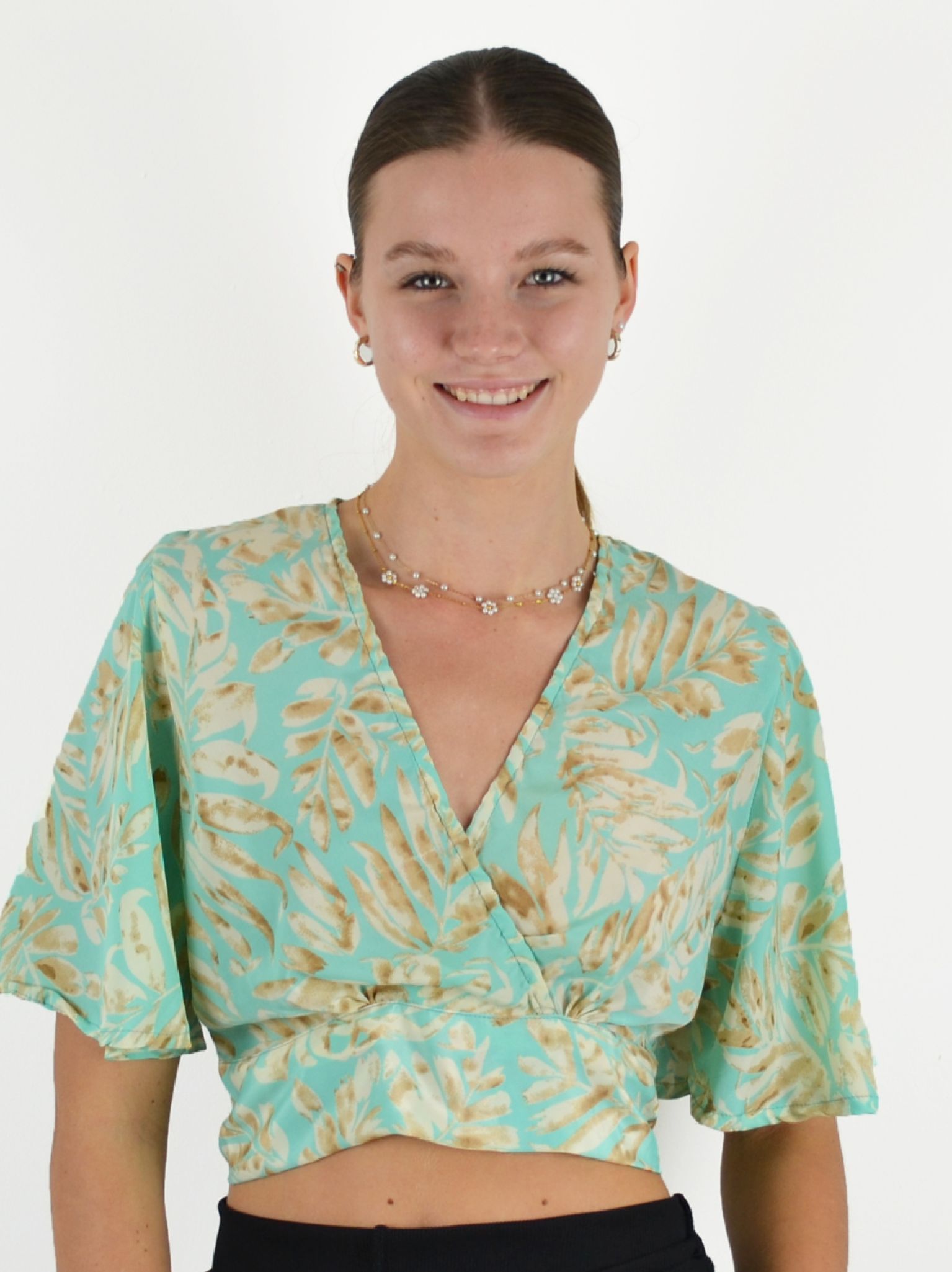 Ce top en 100% polyester léger et fluide offre une silhouette flatteuse.
