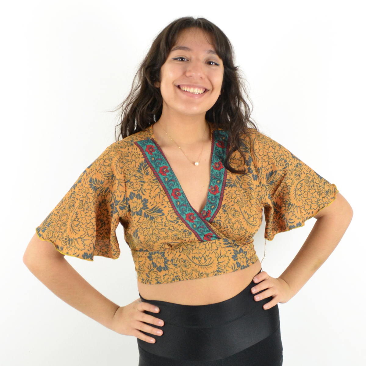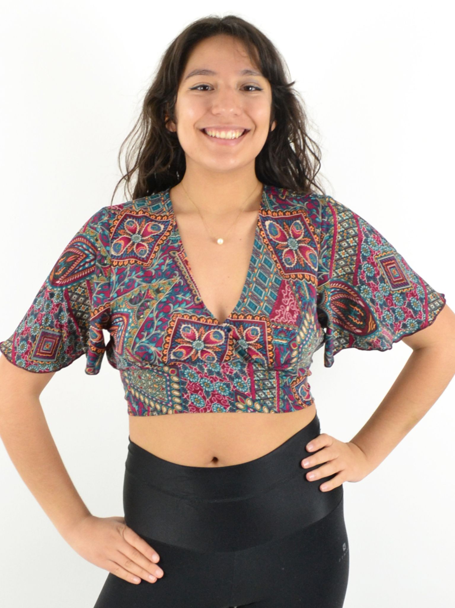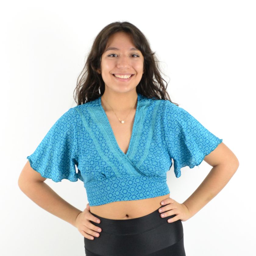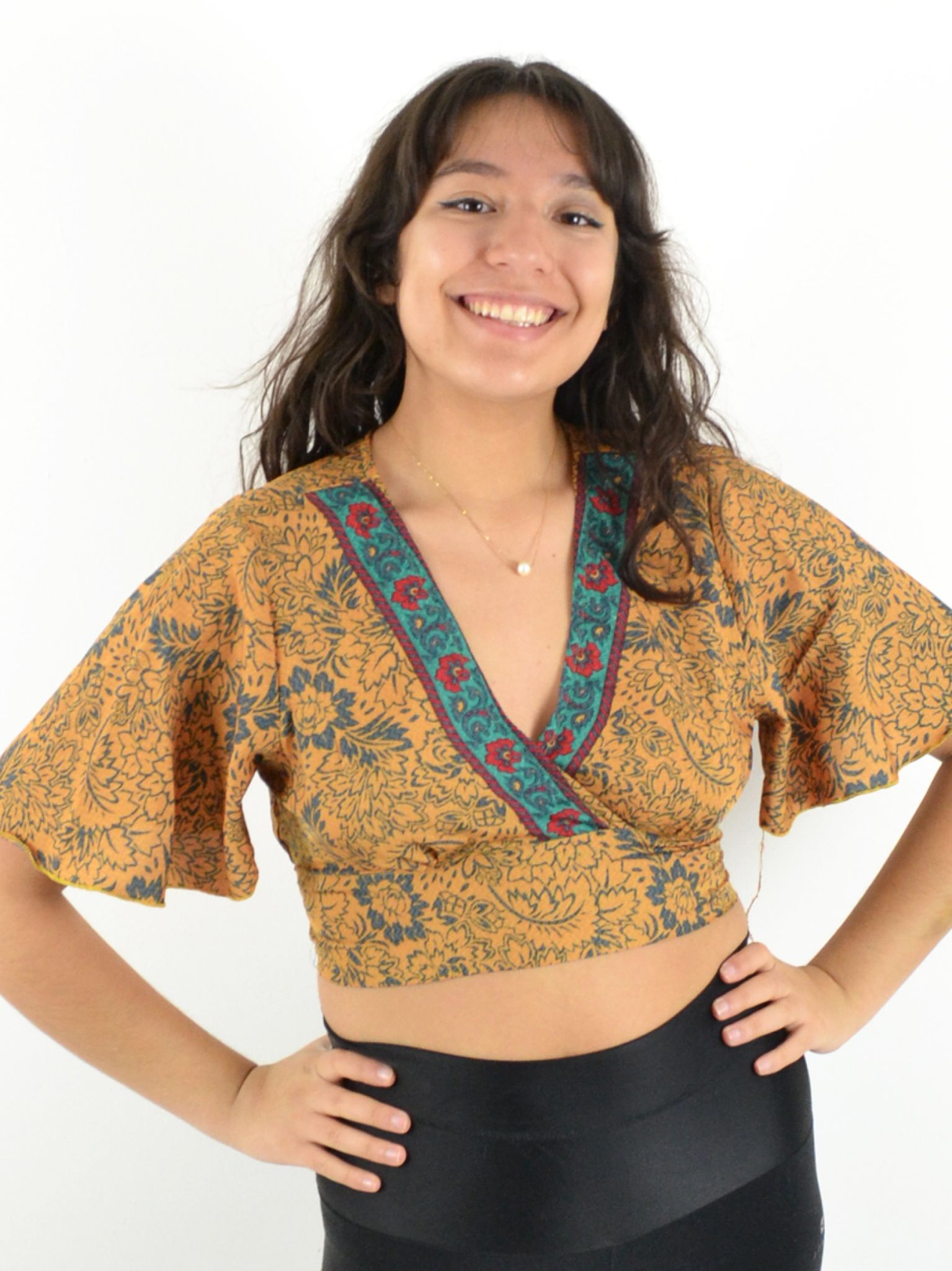 Manches mi-longues évasées pour des mouvements gracieux.