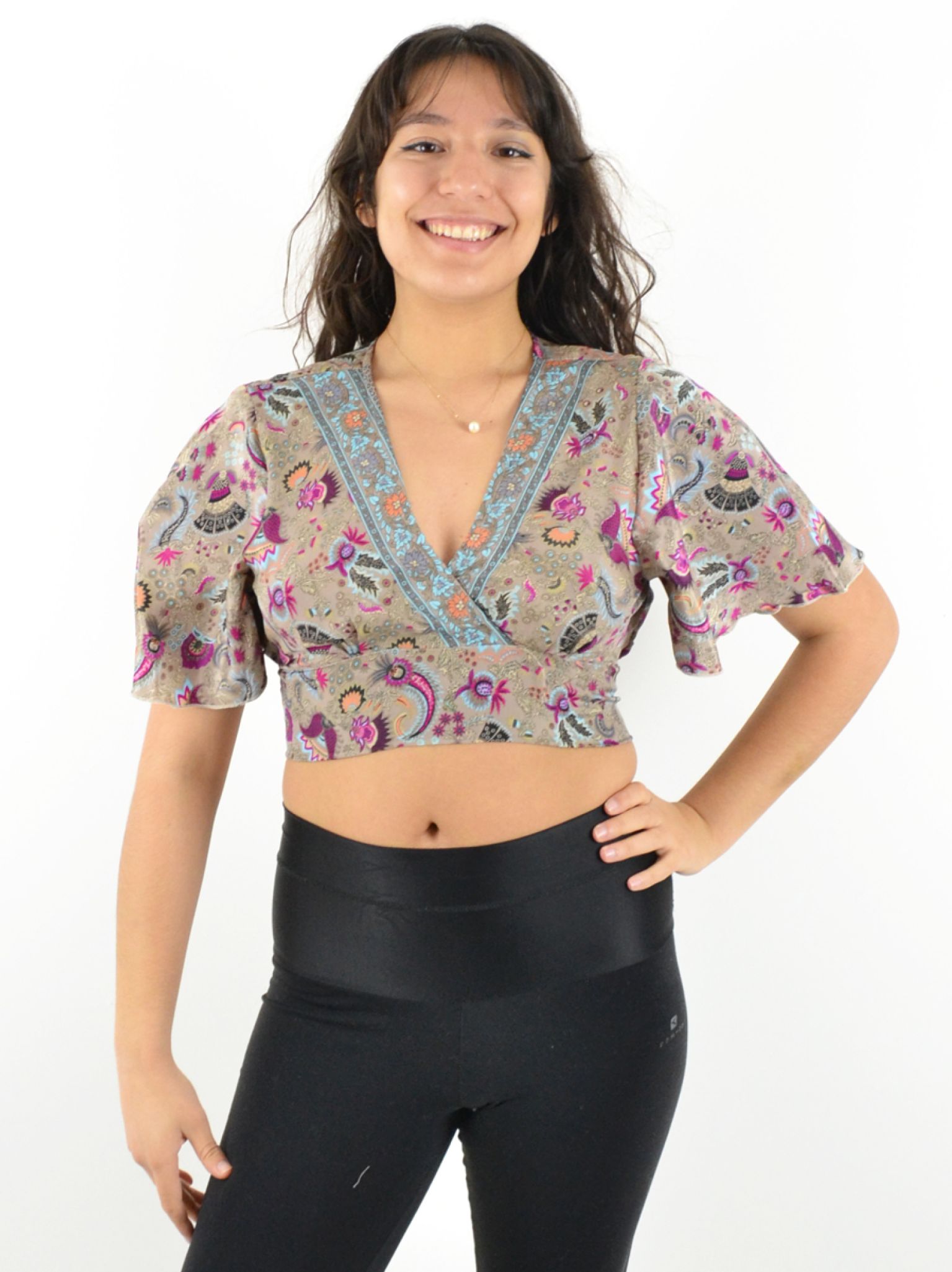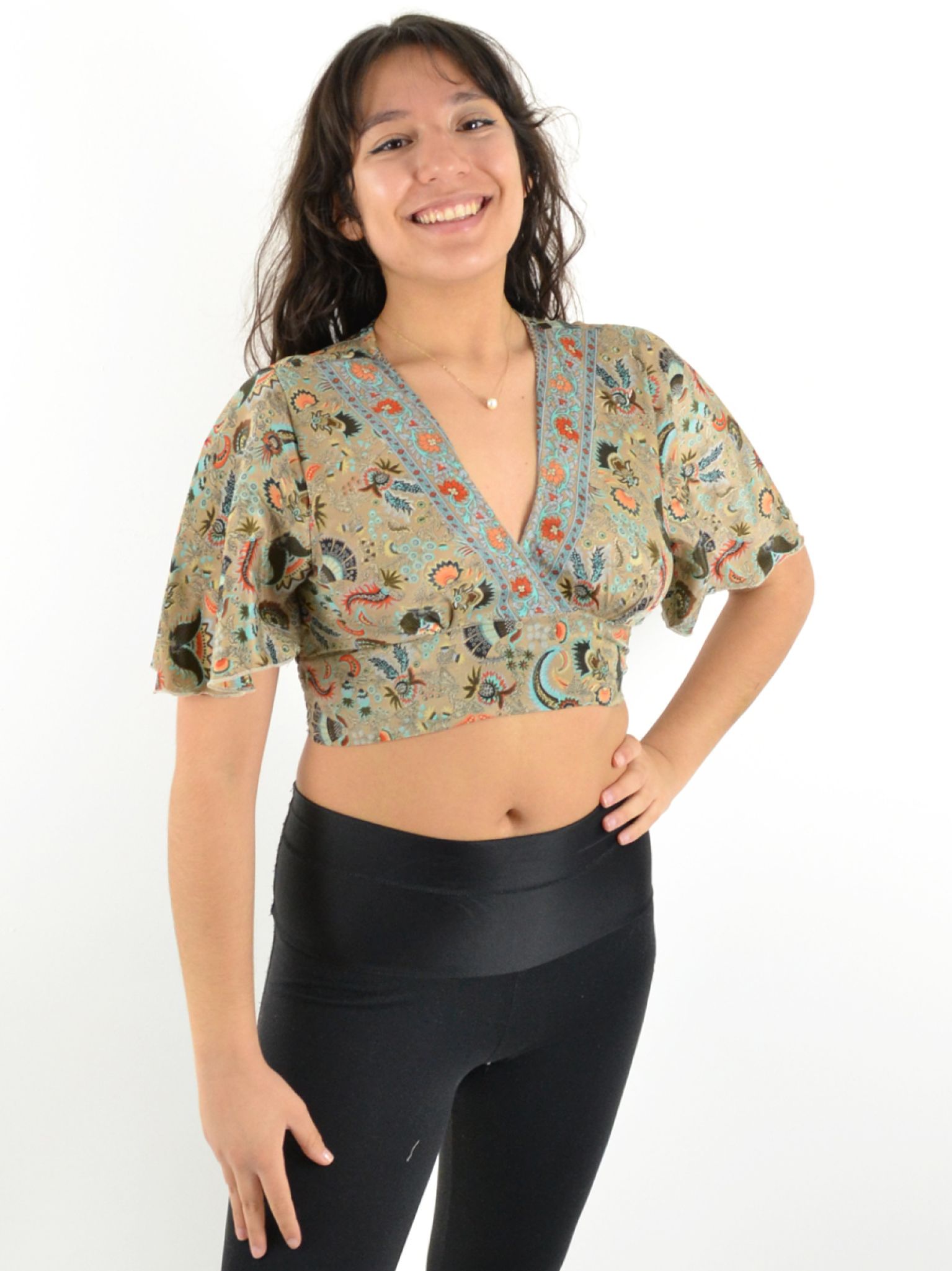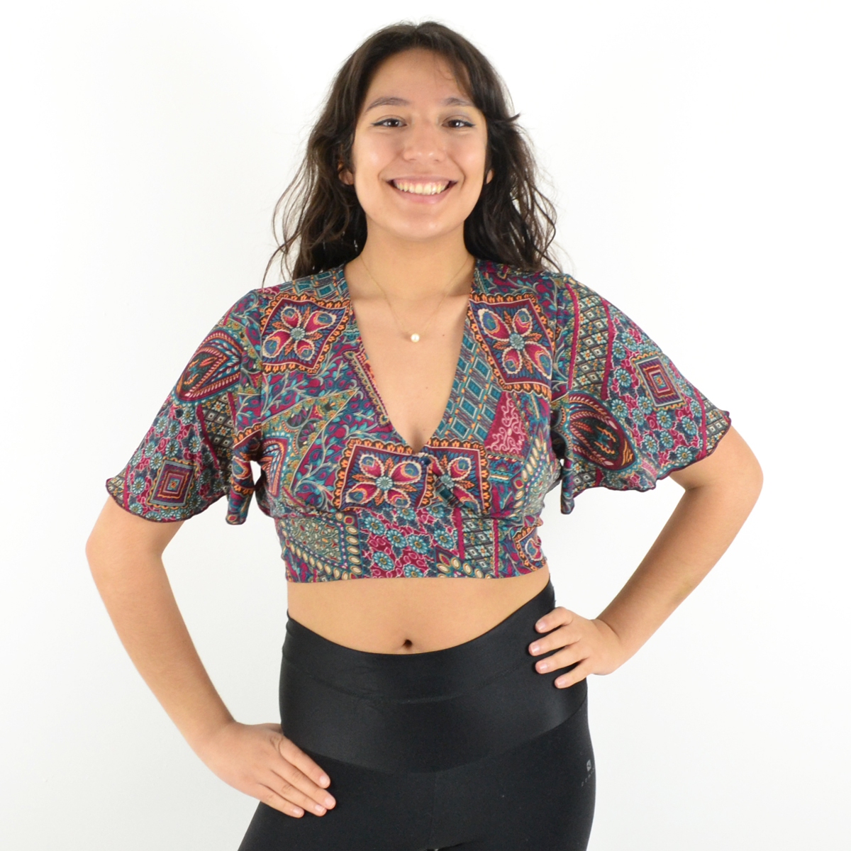 Manches mi-longues évasées pour des mouvements gracieux.