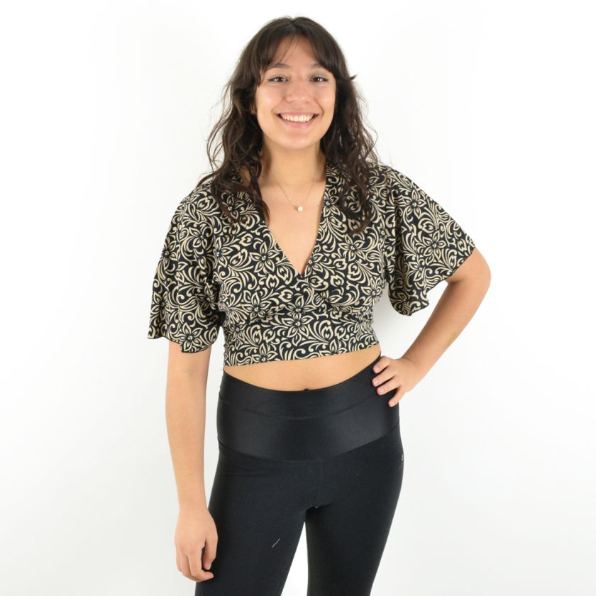 Ce top en 100% polyester léger et fluide offre une silhouette flatteuse.