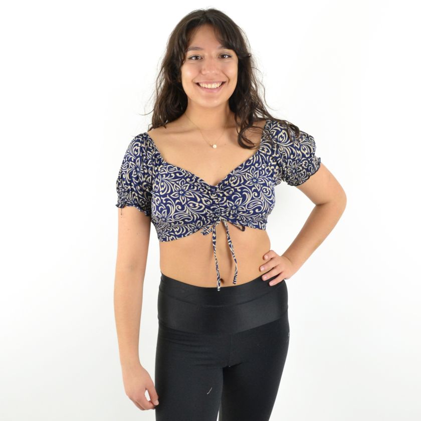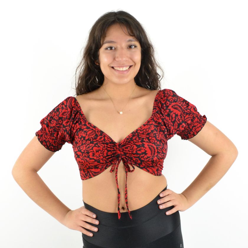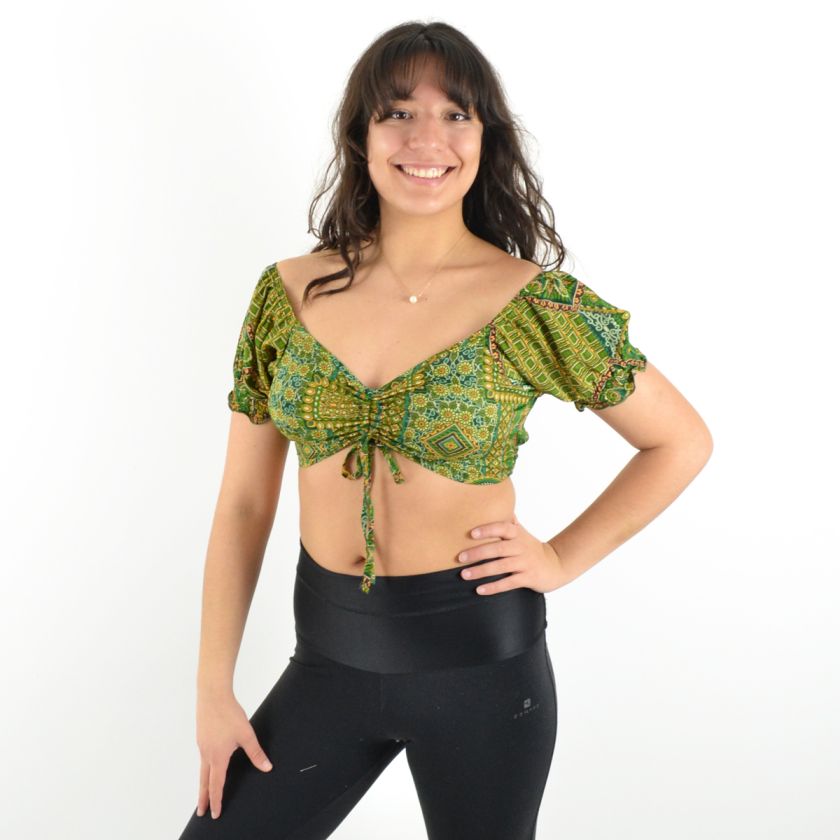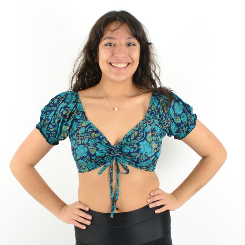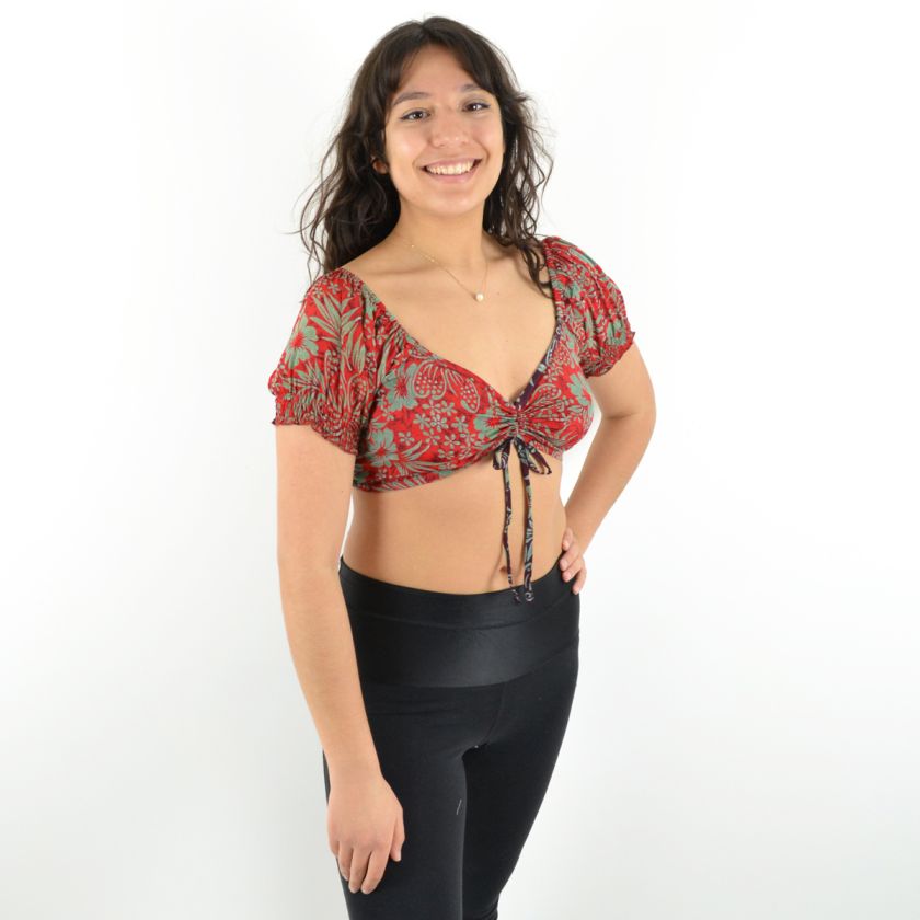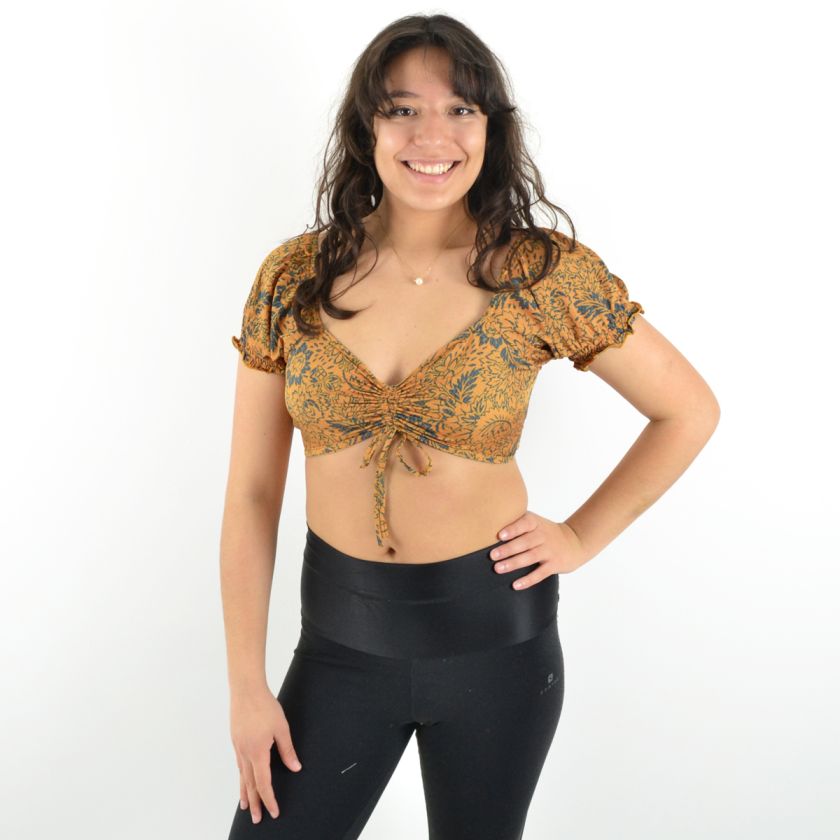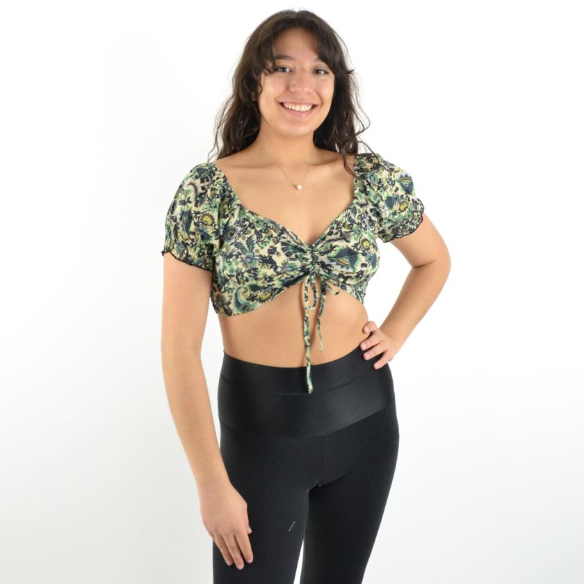 Son col en V et ses deux liens ajustables sur le devant permettent un ajustement parfait, tandis que les manches courtes élastiquées apportent une touche de confort et maintien.