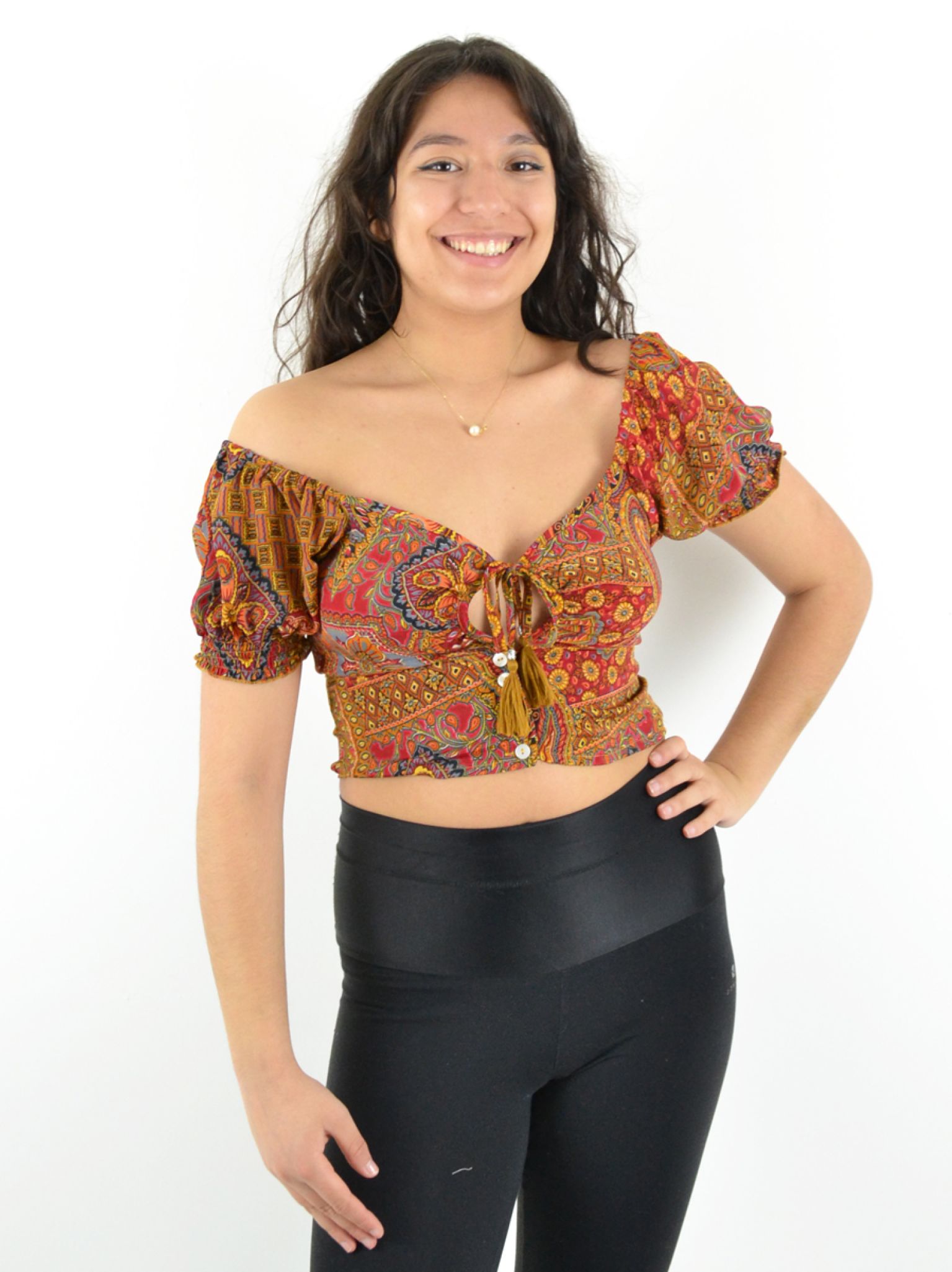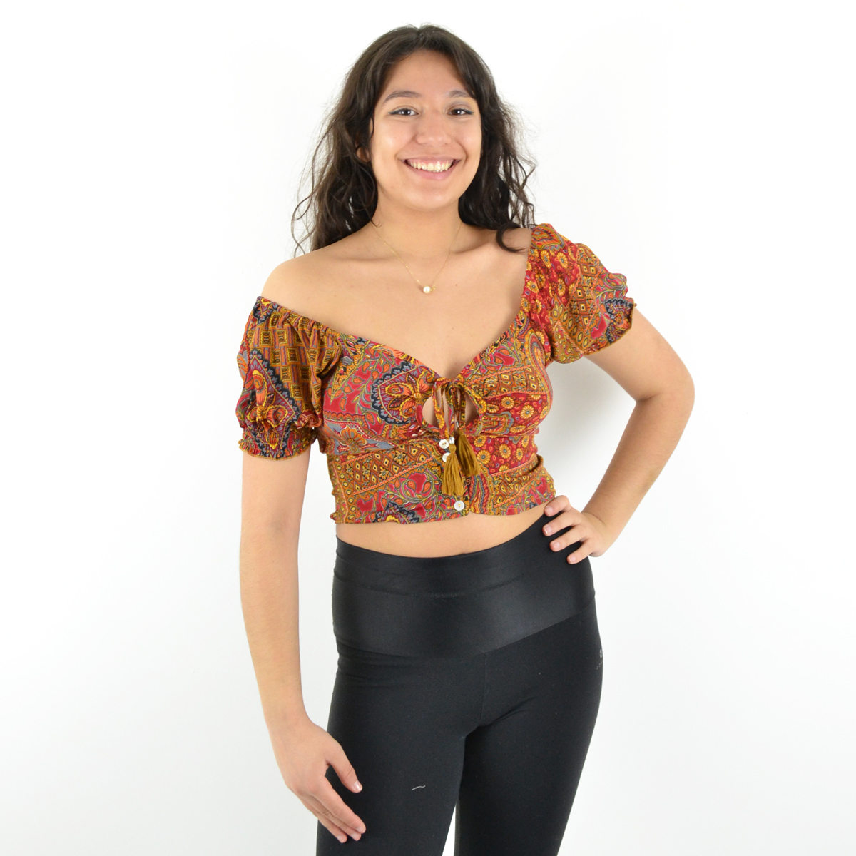 Offrez une touche de fraîcheur à votre garde-robe avec ce top court 100% polyester.