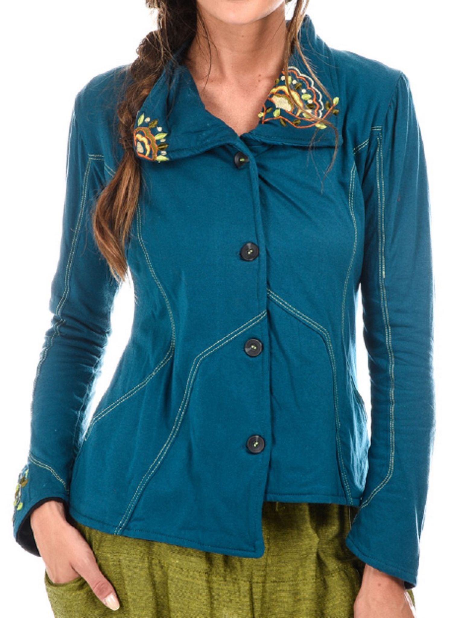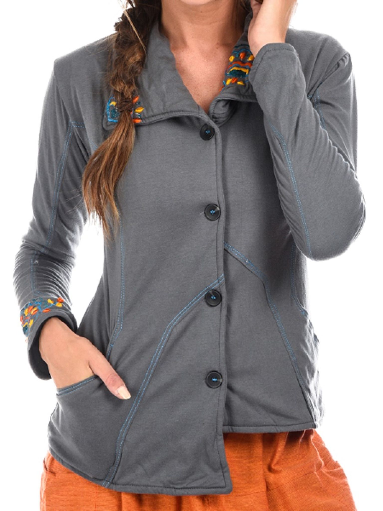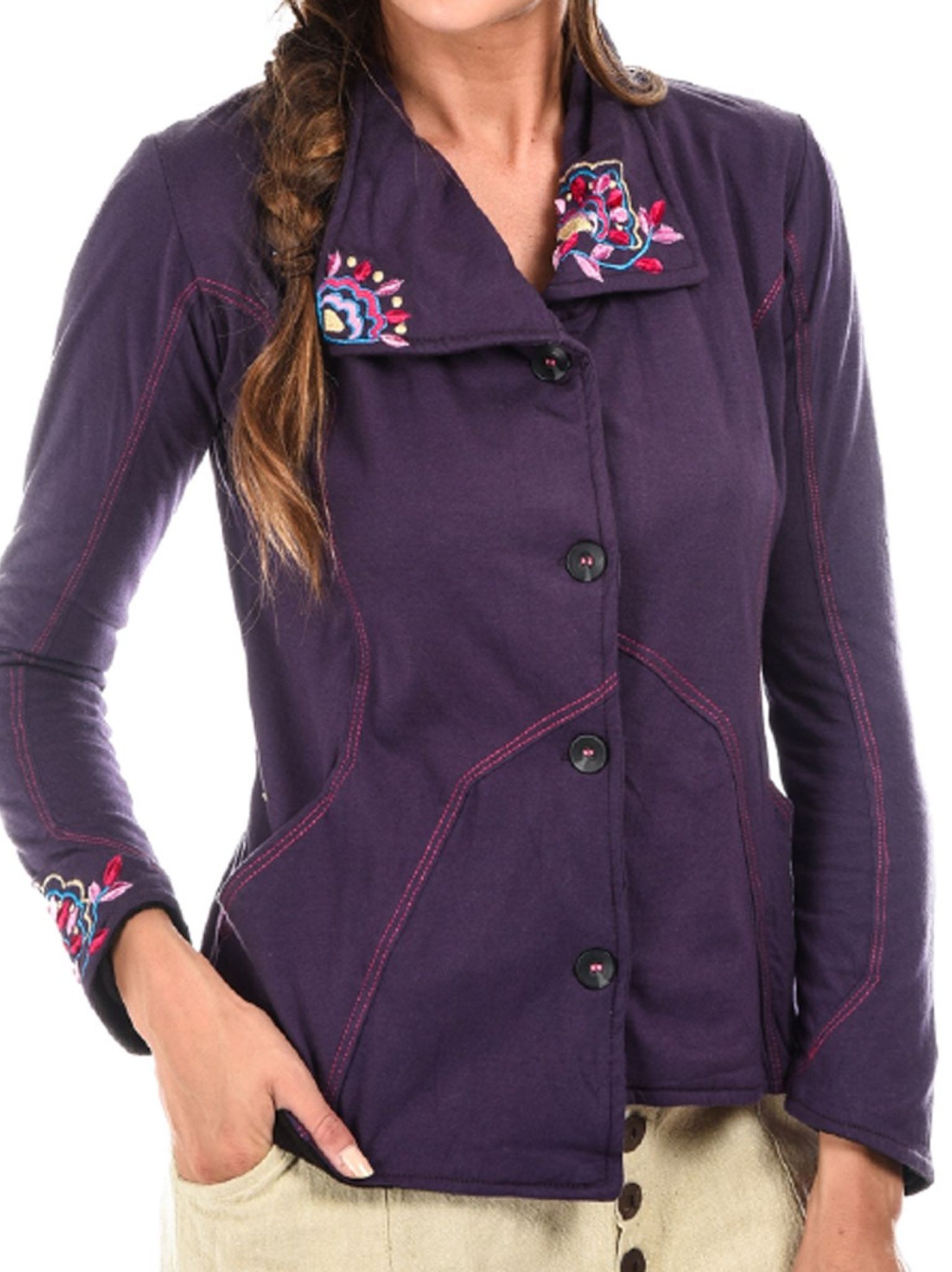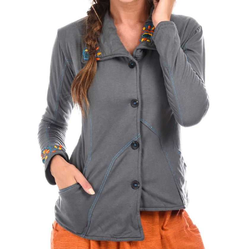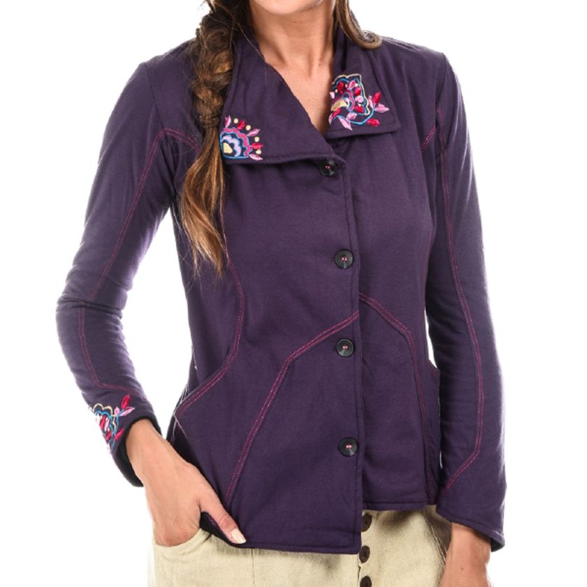 Veste avec broderie Extérieur coton Jersey doublé polaire.